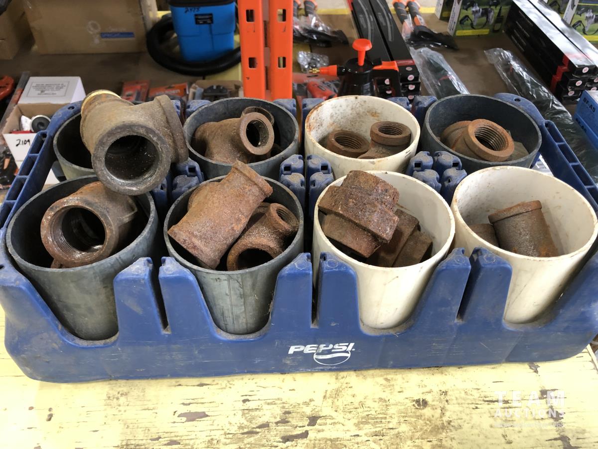 pipe fittings, trailer hitches receivers and balls, bolts, mud flap, battery charger, u-bolts, spiral nails