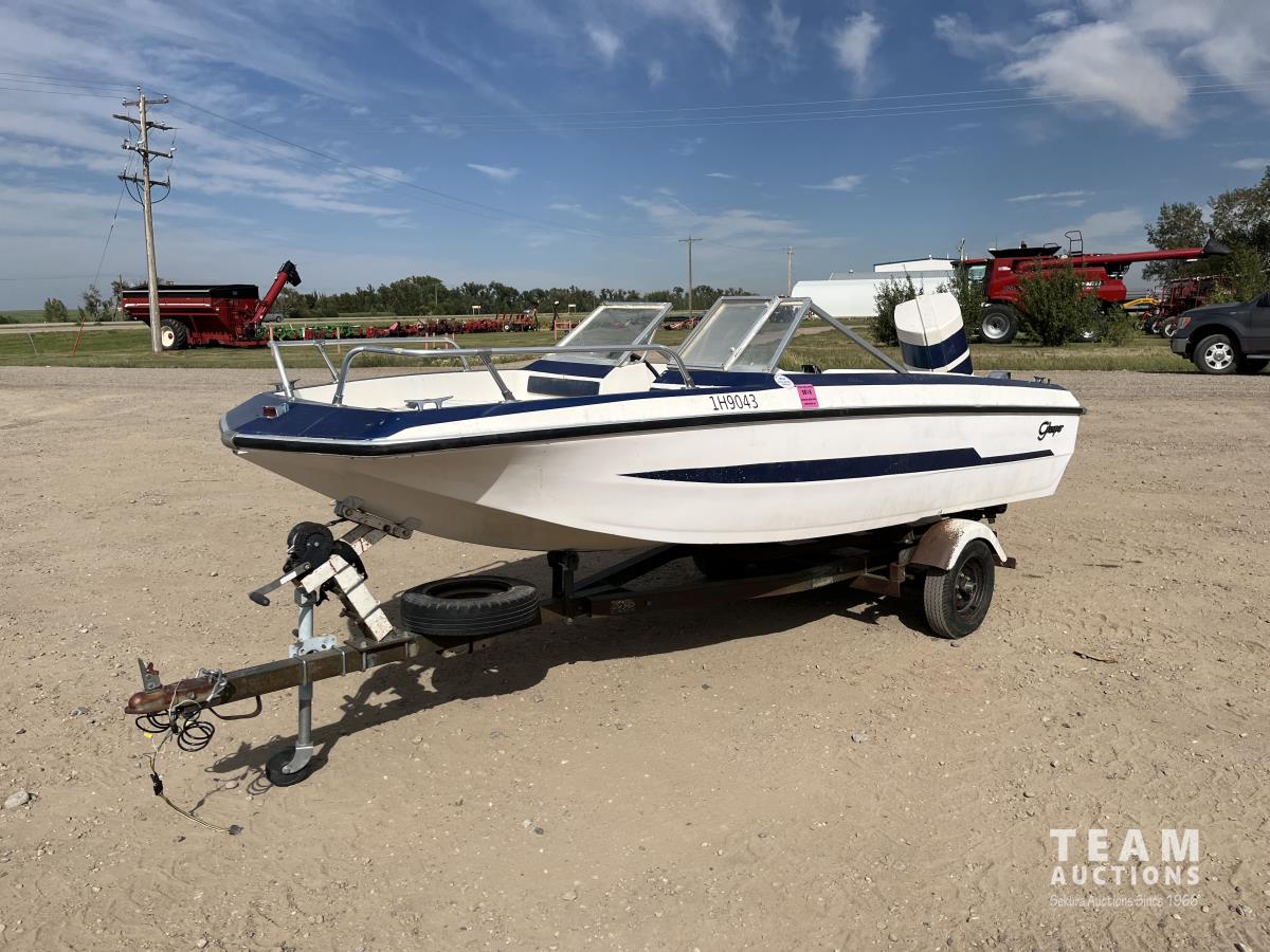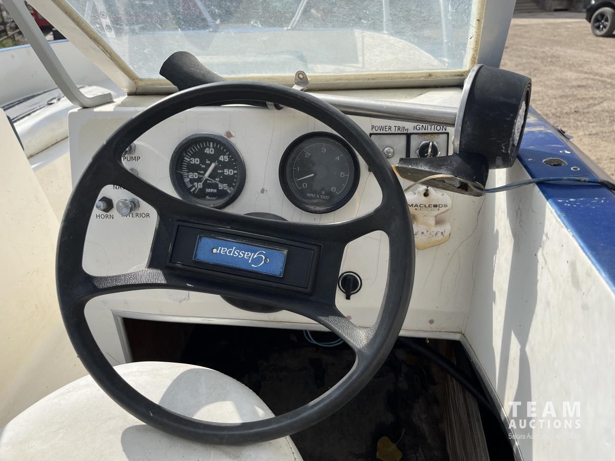 87A 1974 Glasspar 16 Ft Outboard Boat w/ S/A Trailer