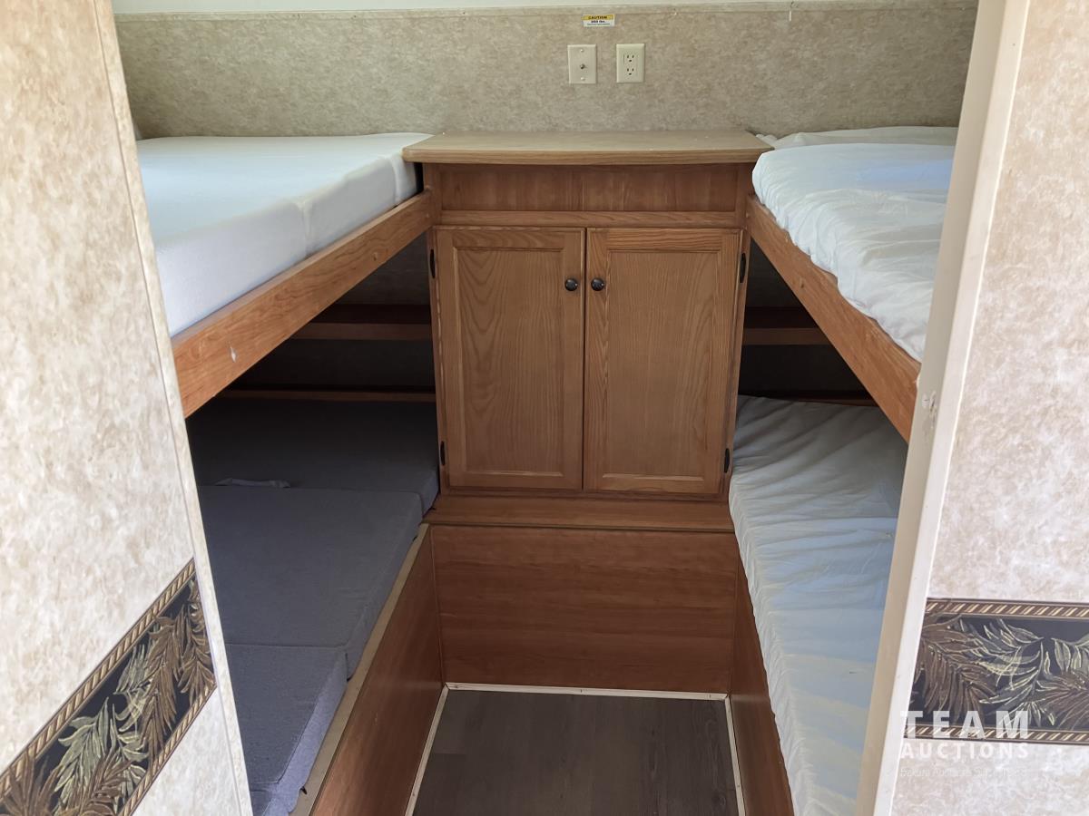 (4) front bunks, rear slide with queen bed, fridge, stove, microwave, 205/75R14