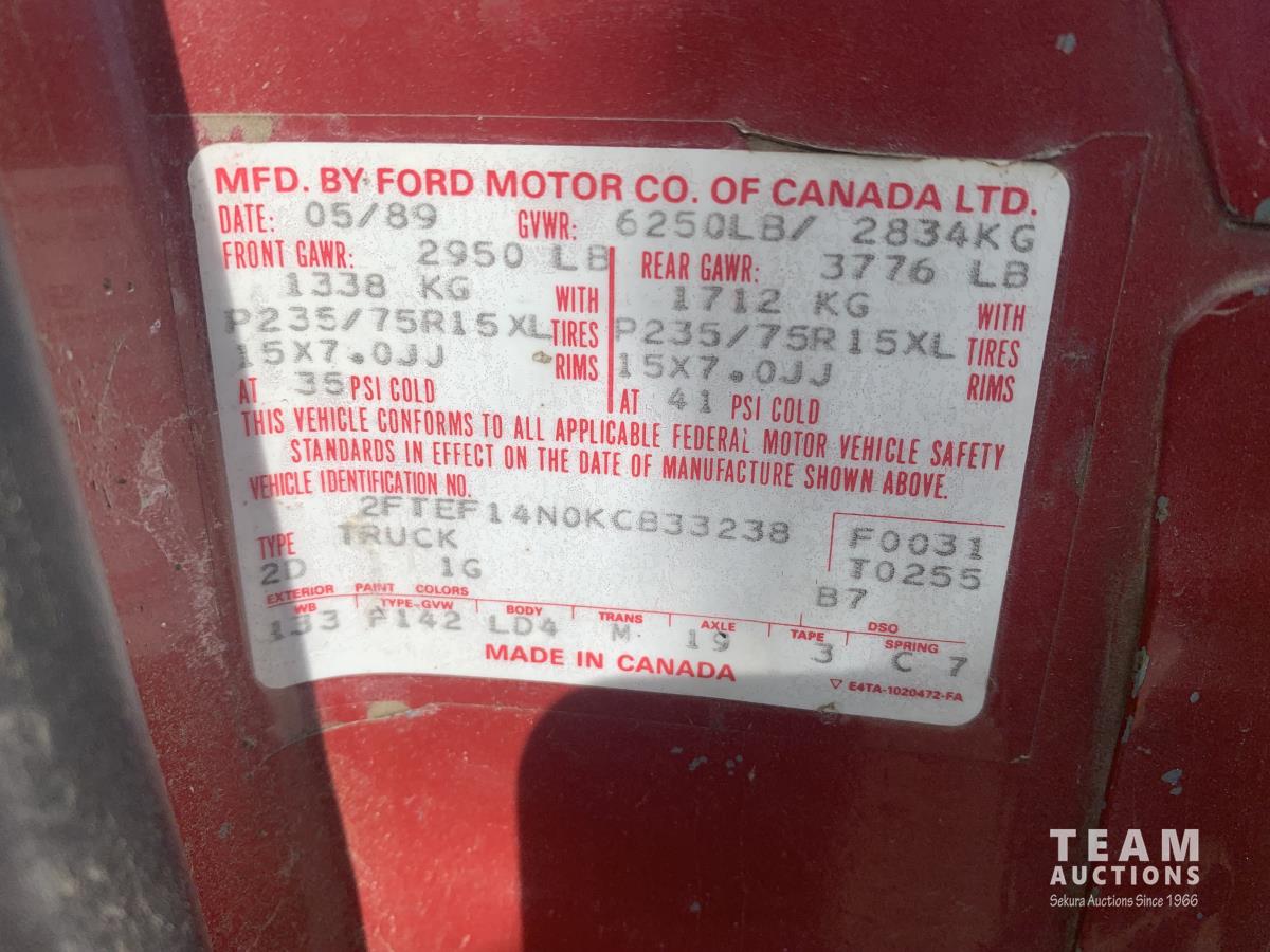 127 1989 Ford F-150 4X4 Regular Cab Pickup Truck