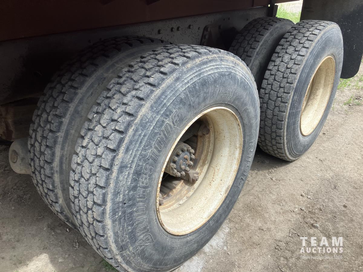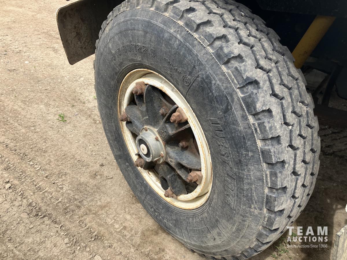 7.8L, diesel, 10 speed transmission, steel box, roll tarp, differential lock, 214 inch WB, 12,000 lb front, 34,000 lb rear, spring suspension, 315/80R22.5 front, 11R22.5 rear