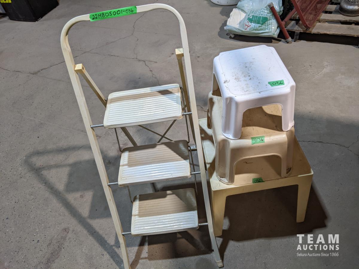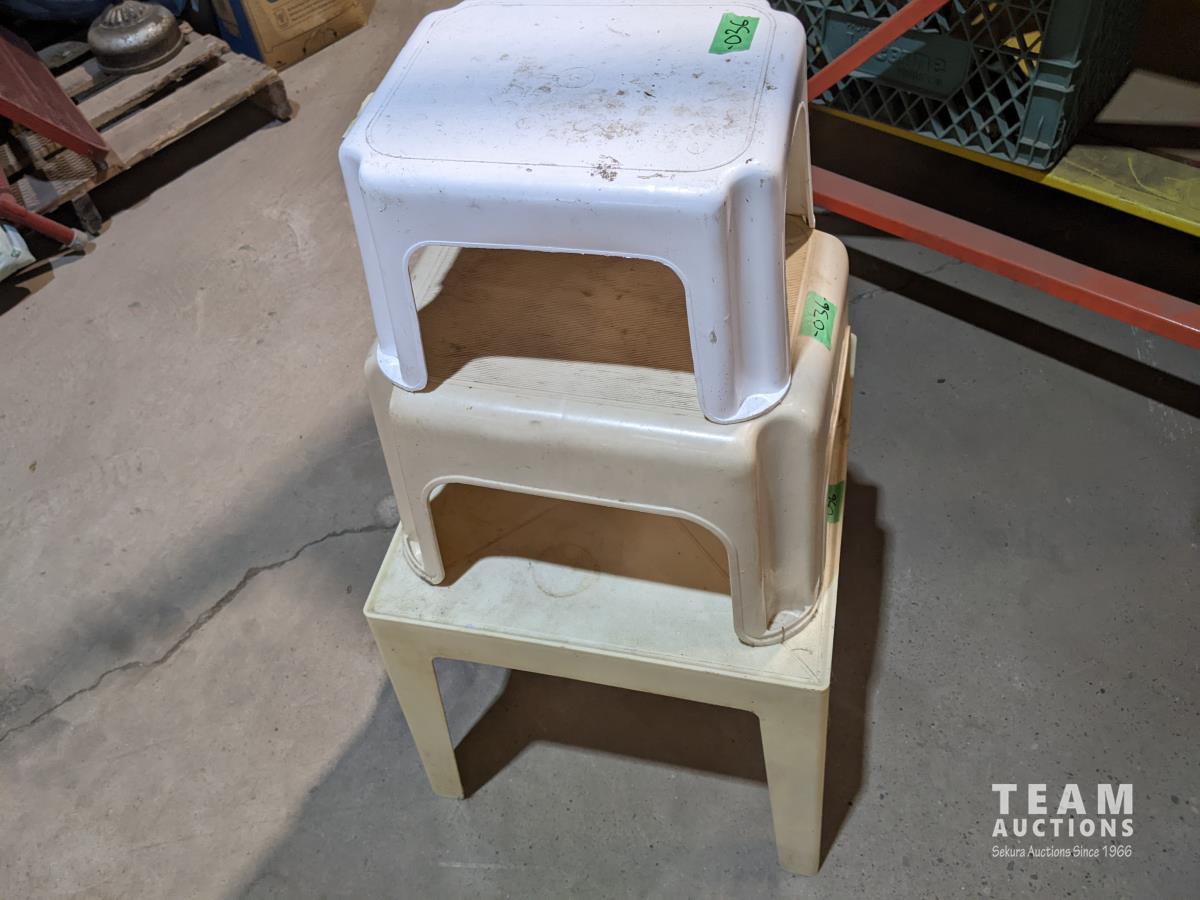 1319 (2) Stools, Plastic Table and Step Ladder