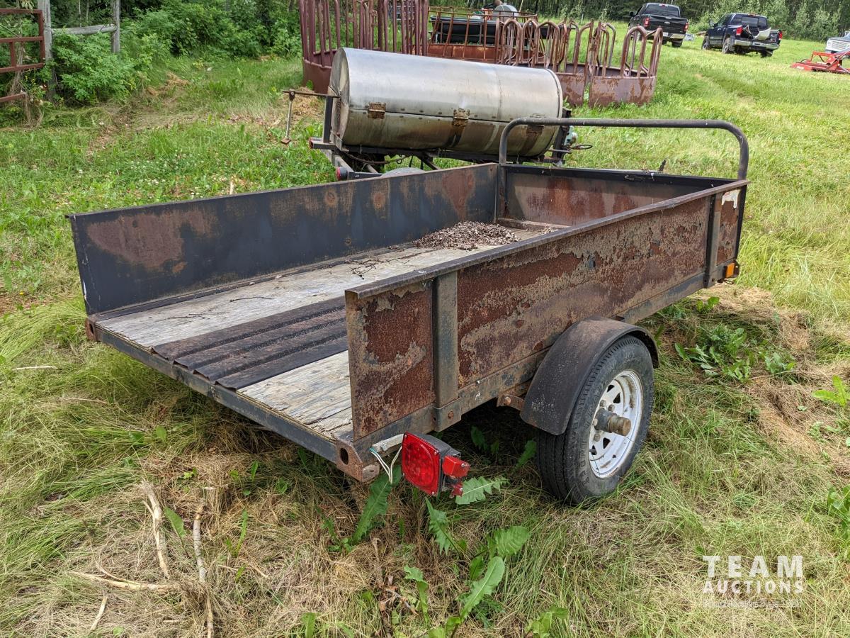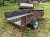 4.5 ft X 8 ft deck with sides, 5.30-12 tires, 2 inch ball hitch, jack