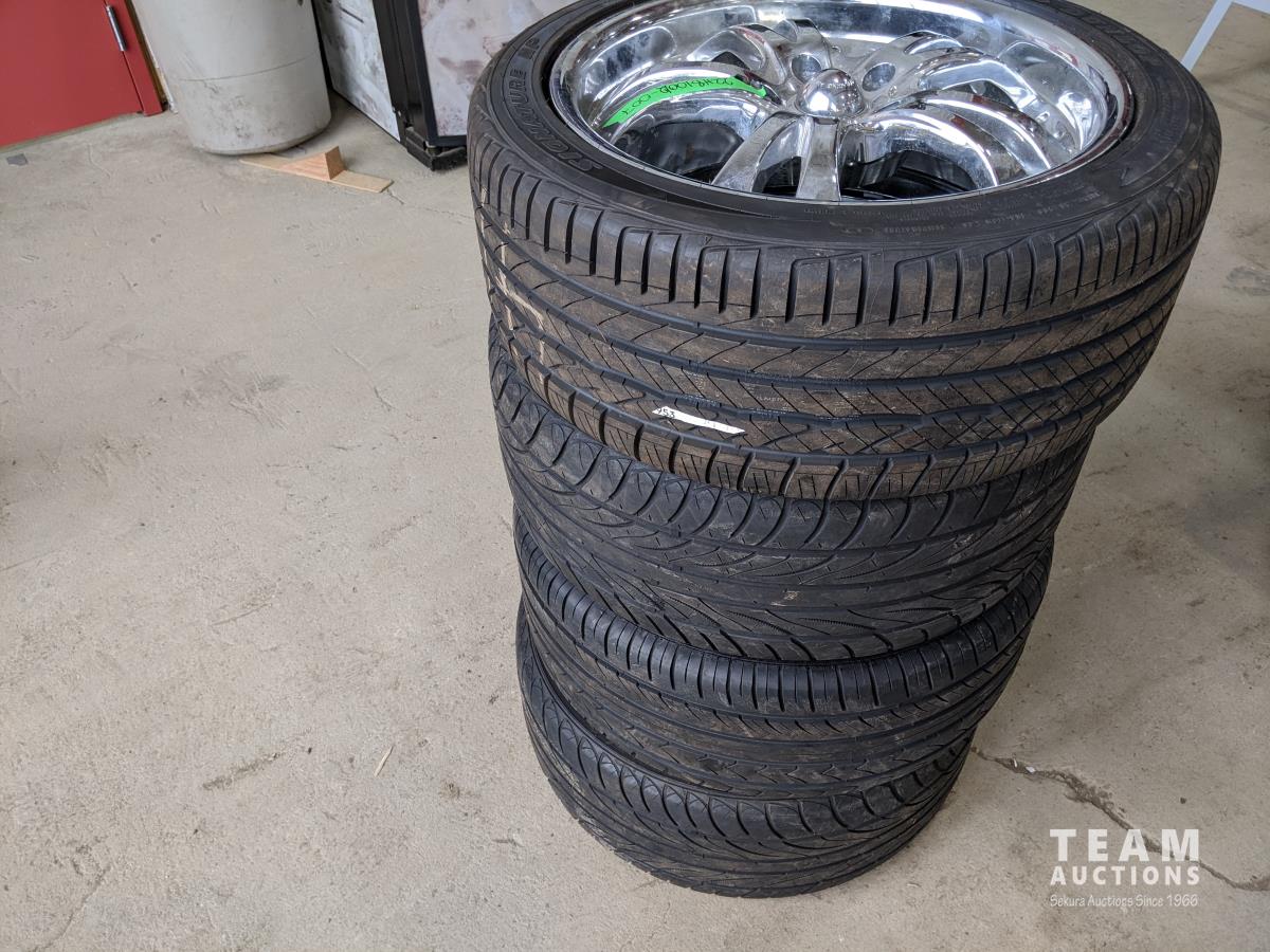 1399 (3) Dunlop 245/40R18 Tires and (1) Sailun 245/40ZR18 Tire On Chrome Rims