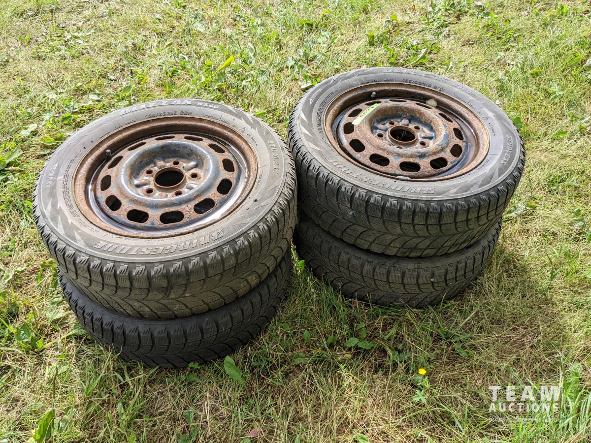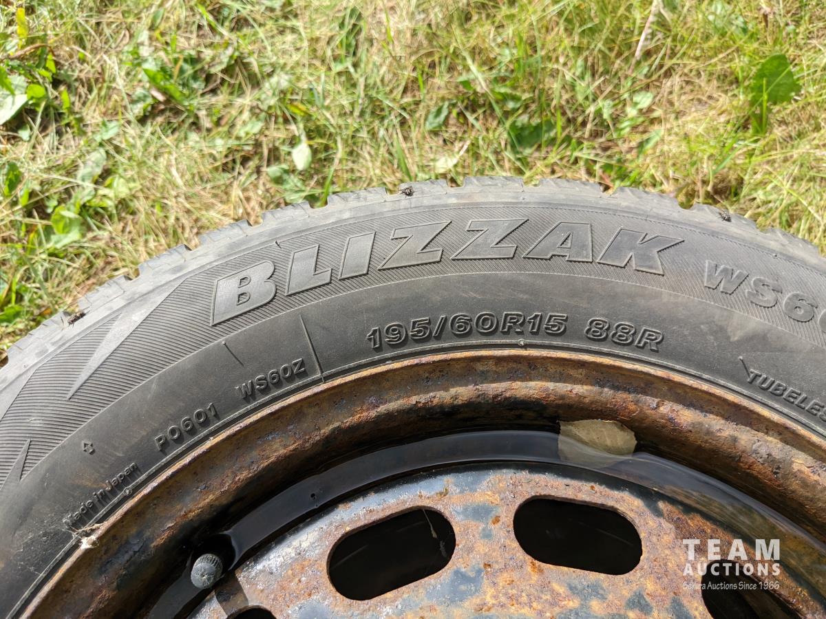 1866 (4) Bridgestone 195/60R15 On 5 Bolt Winter Rims