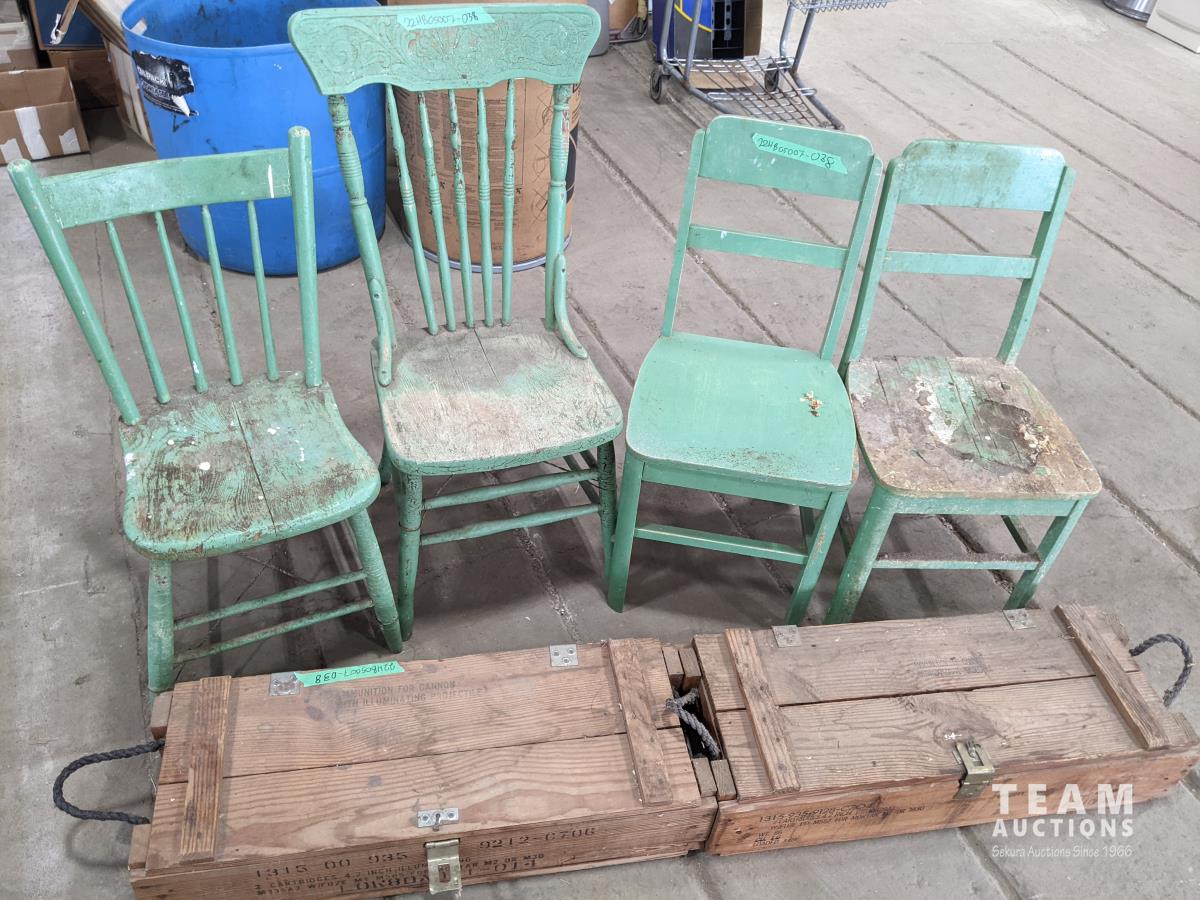 1527 (4) Vintage Chairs & (2) Vintage Mortar Cartridge Cases