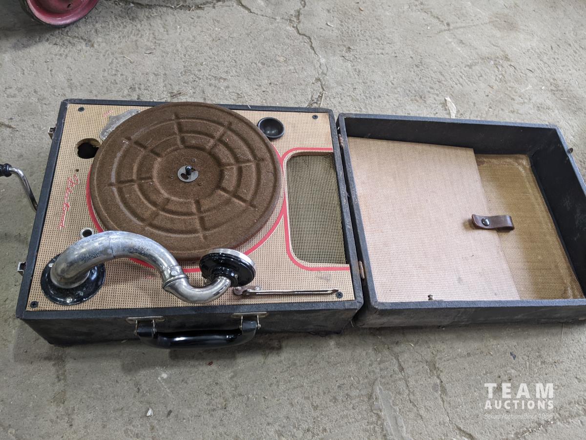 1386 Antique Peddle Car, Antique Hand Crank Record Player