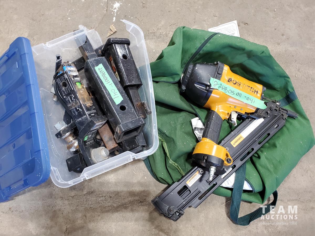 1383 Bostitch Framing Nailer, Tote of Assorted Hitches