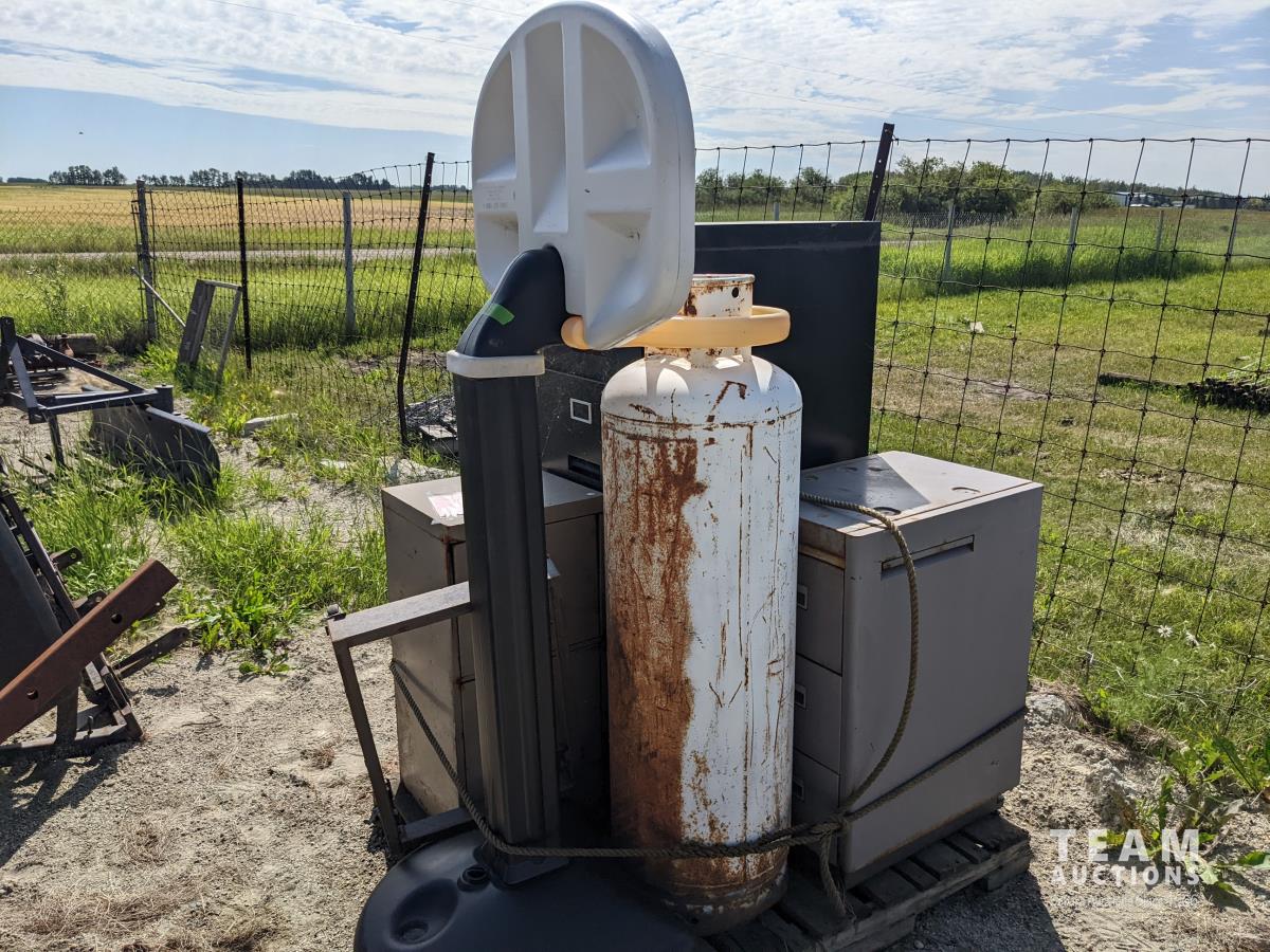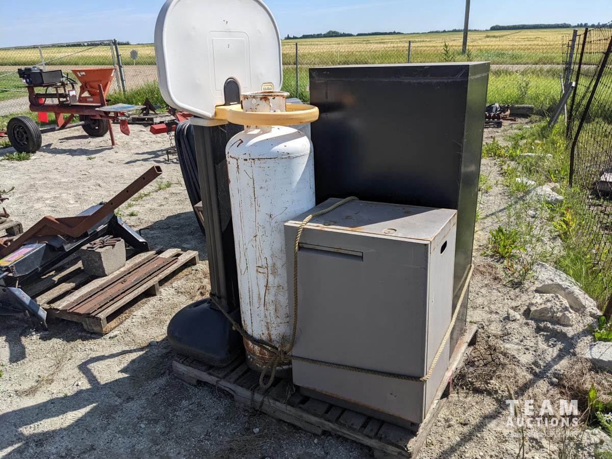 2001 Full 100 lb Propane Bottle, Filing Cabinet and Little Tykes Basketball Hoop