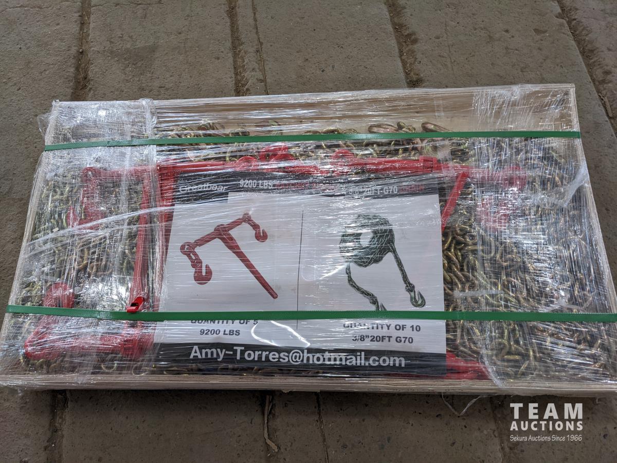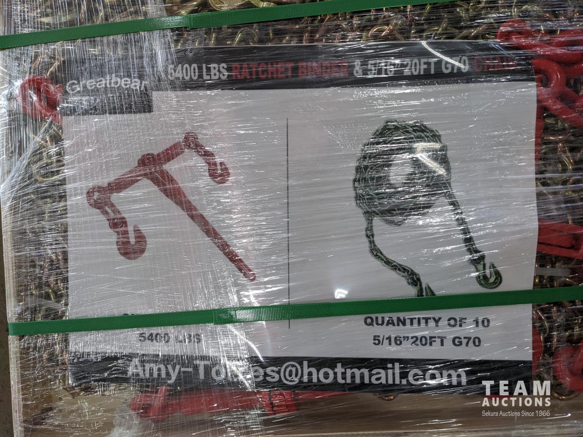 1189 Greatbear (5) 9200 lb Ratchet Binders and (10) 20 Ft Chains (Unused)