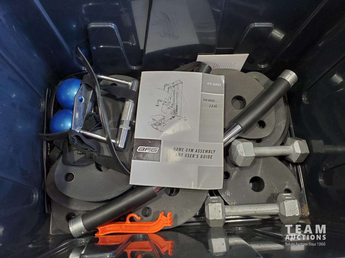 1468 AFG 2.0AS home gym with tote of accessories, and weights