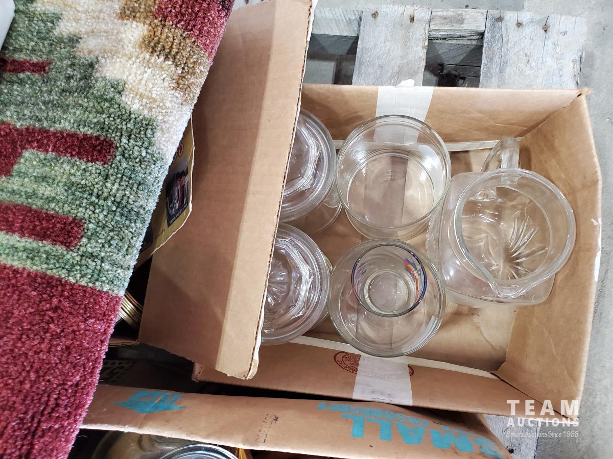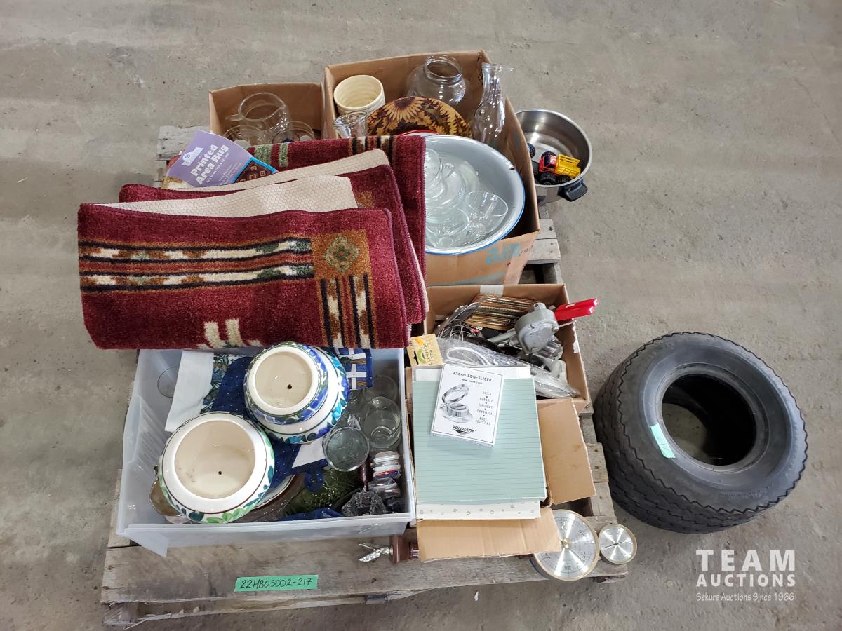 area rug 40 inch x60 inch, assorted glassware, Goodyear, 18X8.50, kitchen items