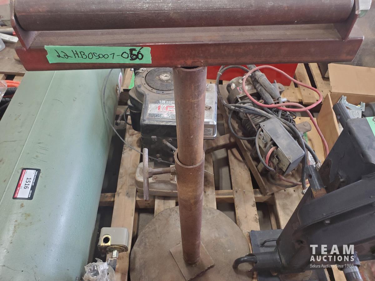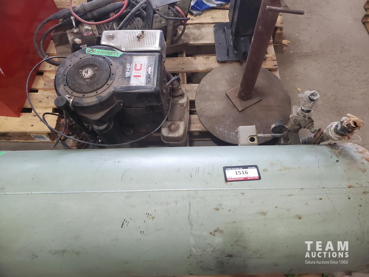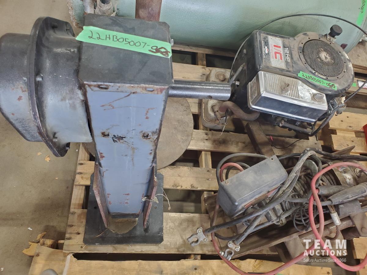 12 HP I/C Briggs & Stratton motor, roller stand, trailer landing gear, Warn winch, and air tank