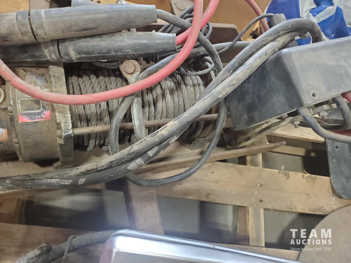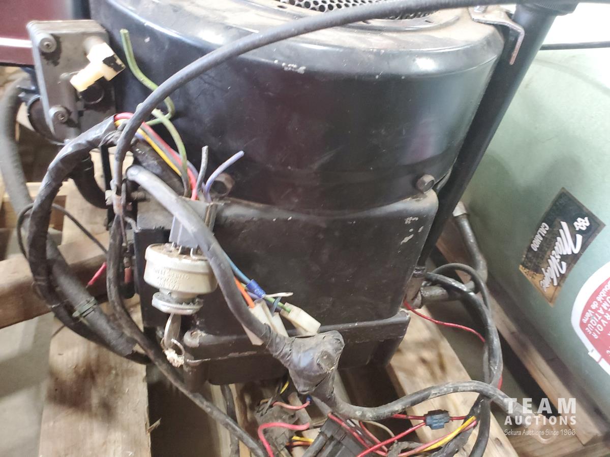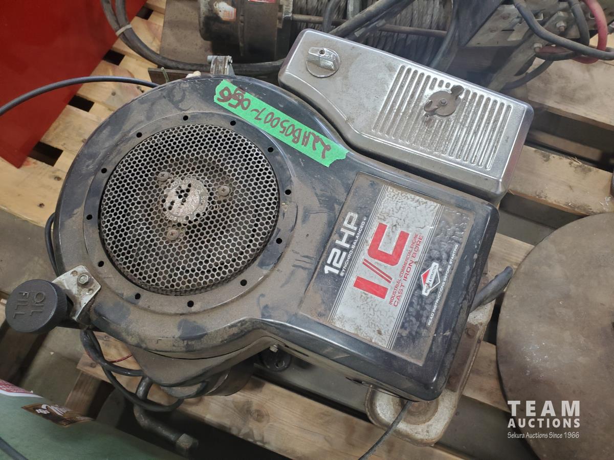 12 HP I/C Briggs & Stratton motor, roller stand, trailer landing gear, Warn winch, and air tank