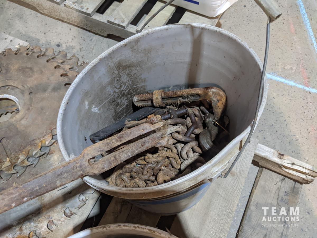 pressure sprayer, fencing nails, chains and boomers, saws, miscellaneous tools