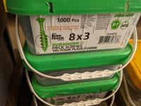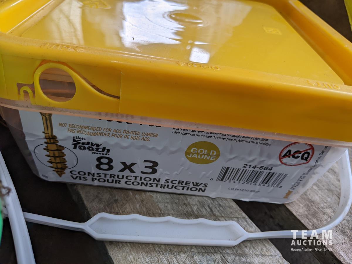 Moving blankets (x2), tarp, deck screws, assorted tools