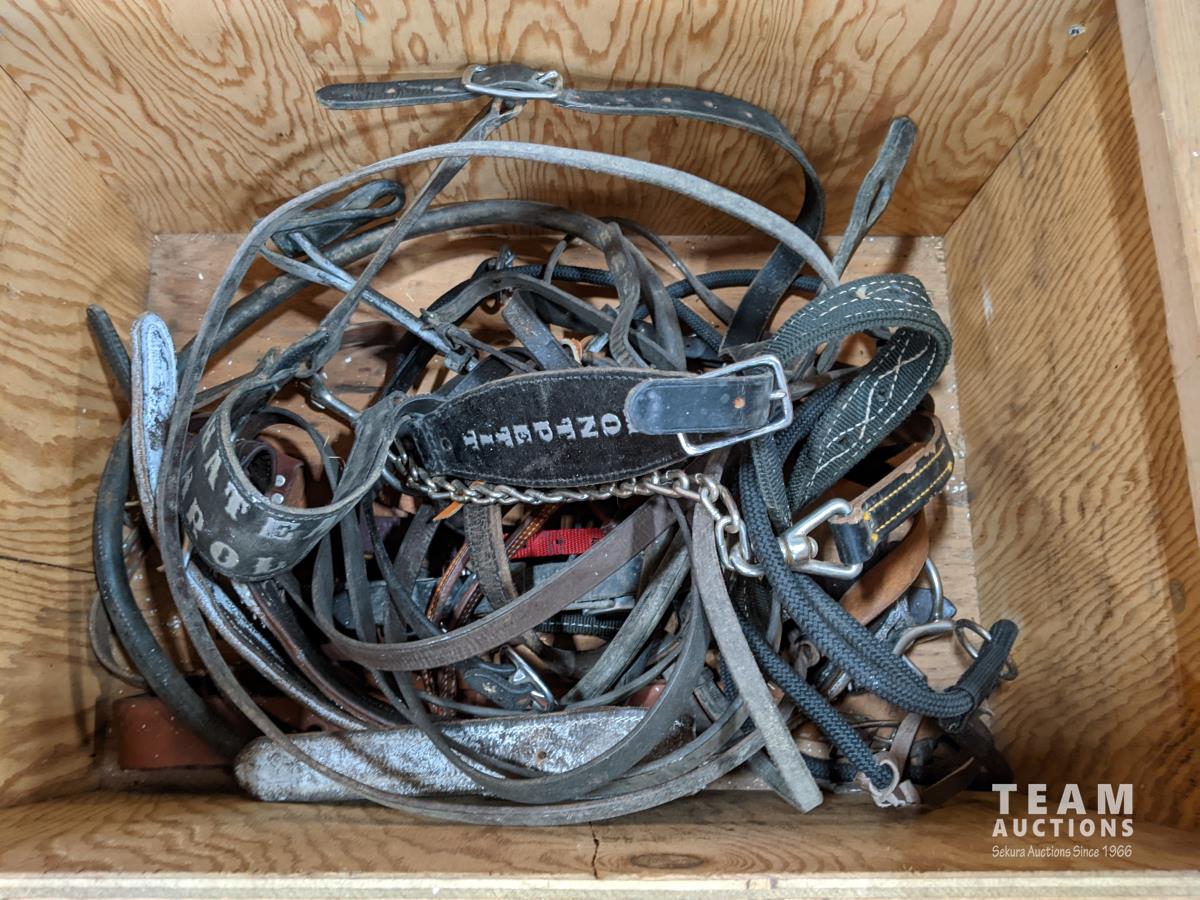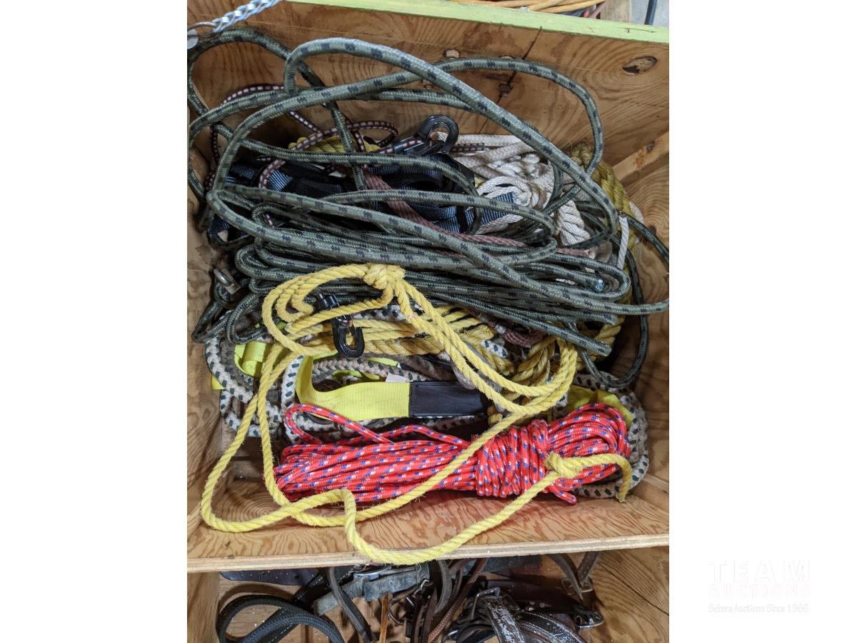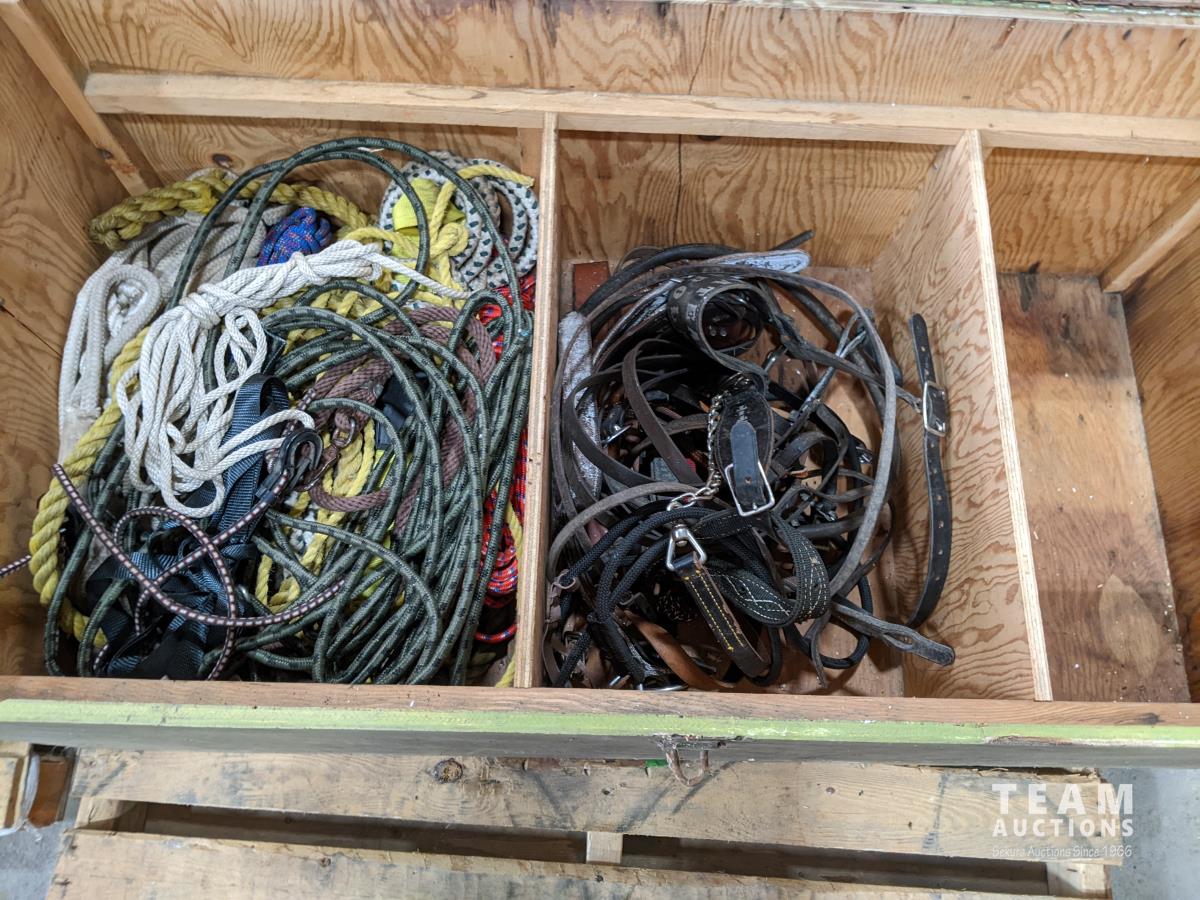 Wooden box of horse tack & ropes