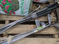 sump pump, bag of moss, bag of Vermiculite, golf clubs