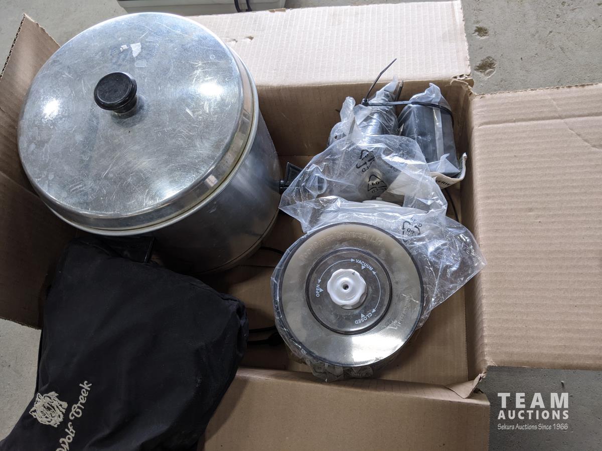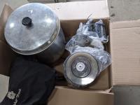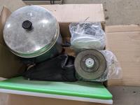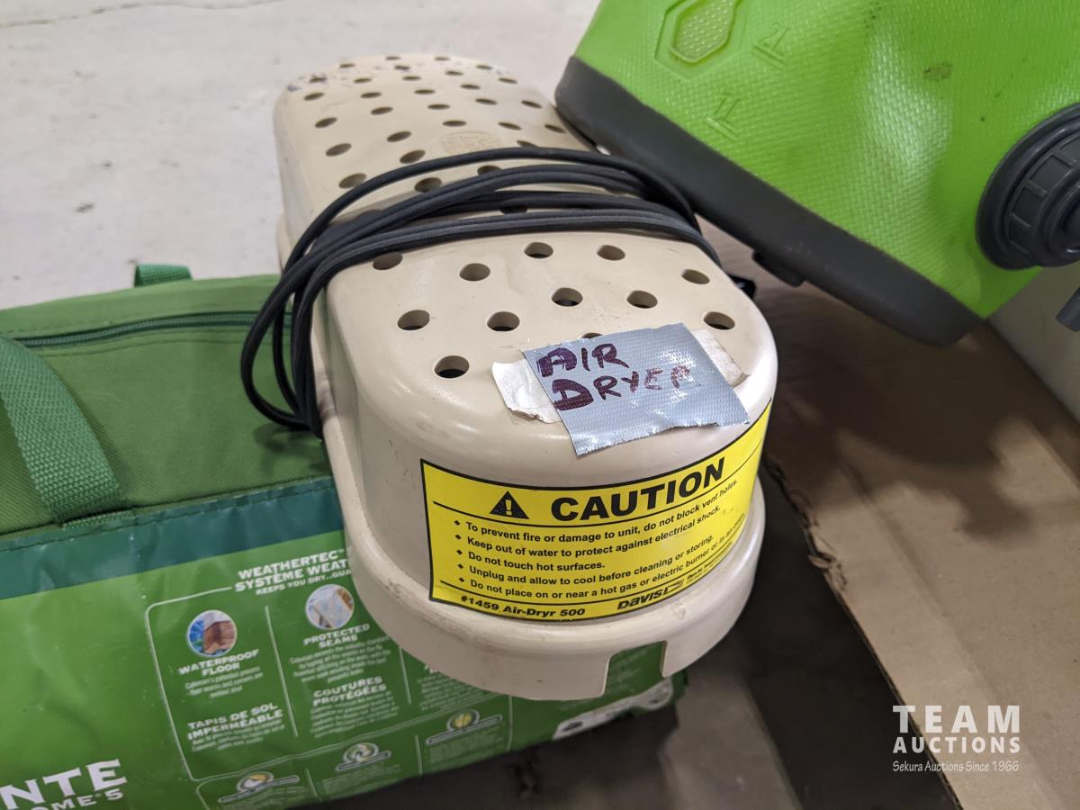 tent, air dryer, drink jug, coffee perk, cutting boards, foot massager