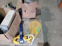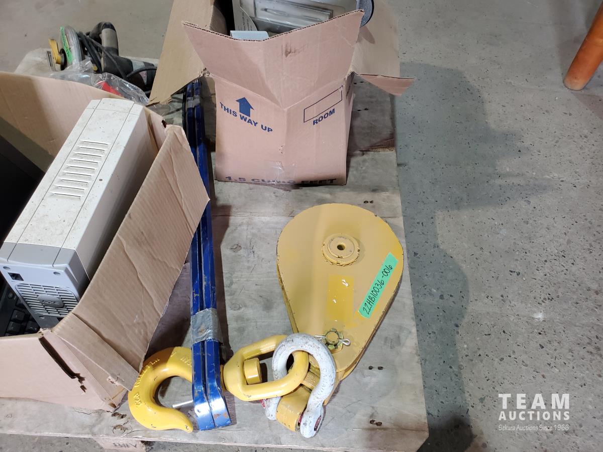 Heavy duty snatch block, (2) pry bar & bull pin, fat max circular saw, (3) pressurized spray bottles, speakers, keyboard, CD-R, back up tower, survival kit