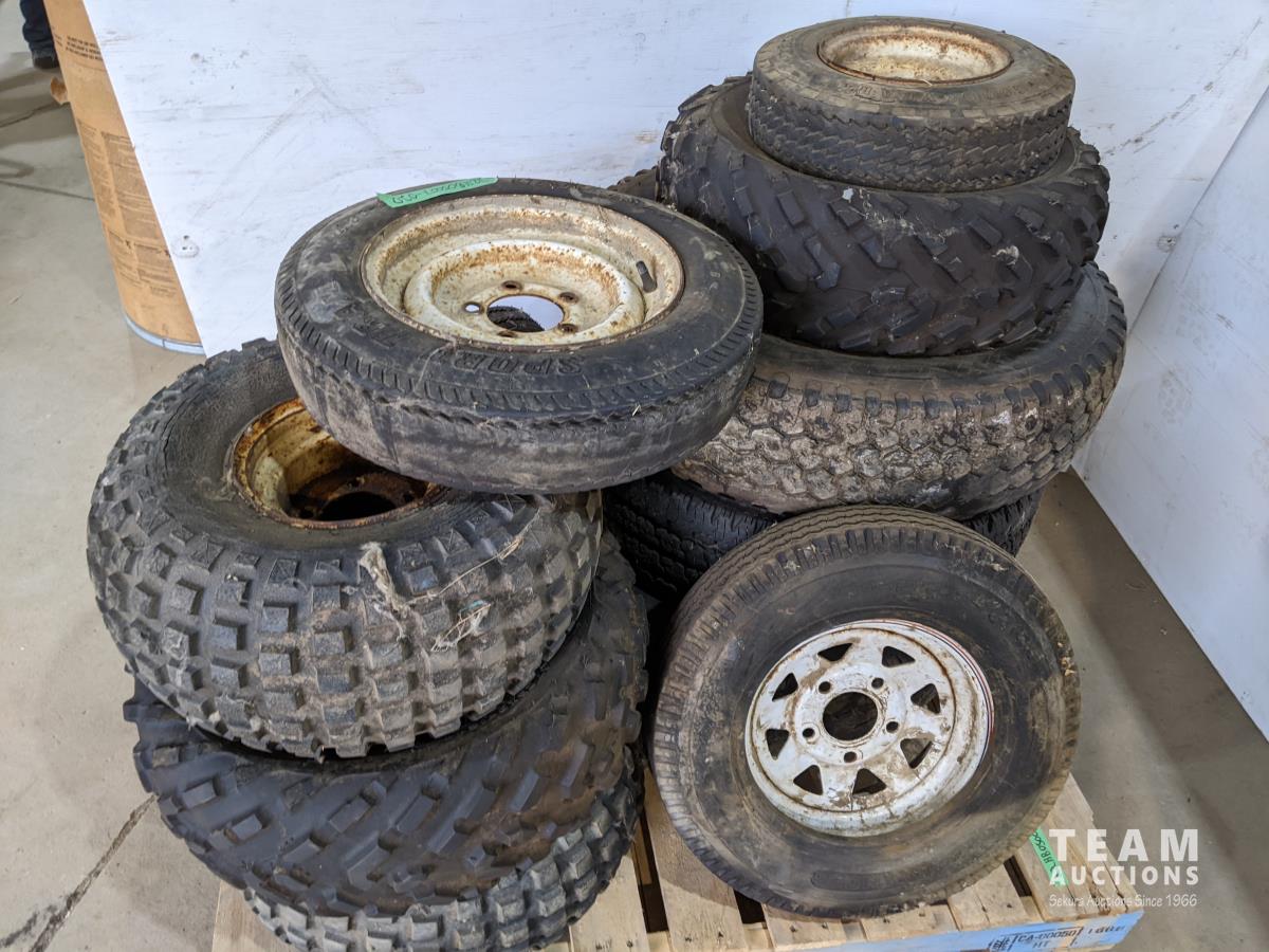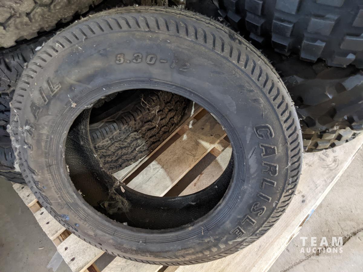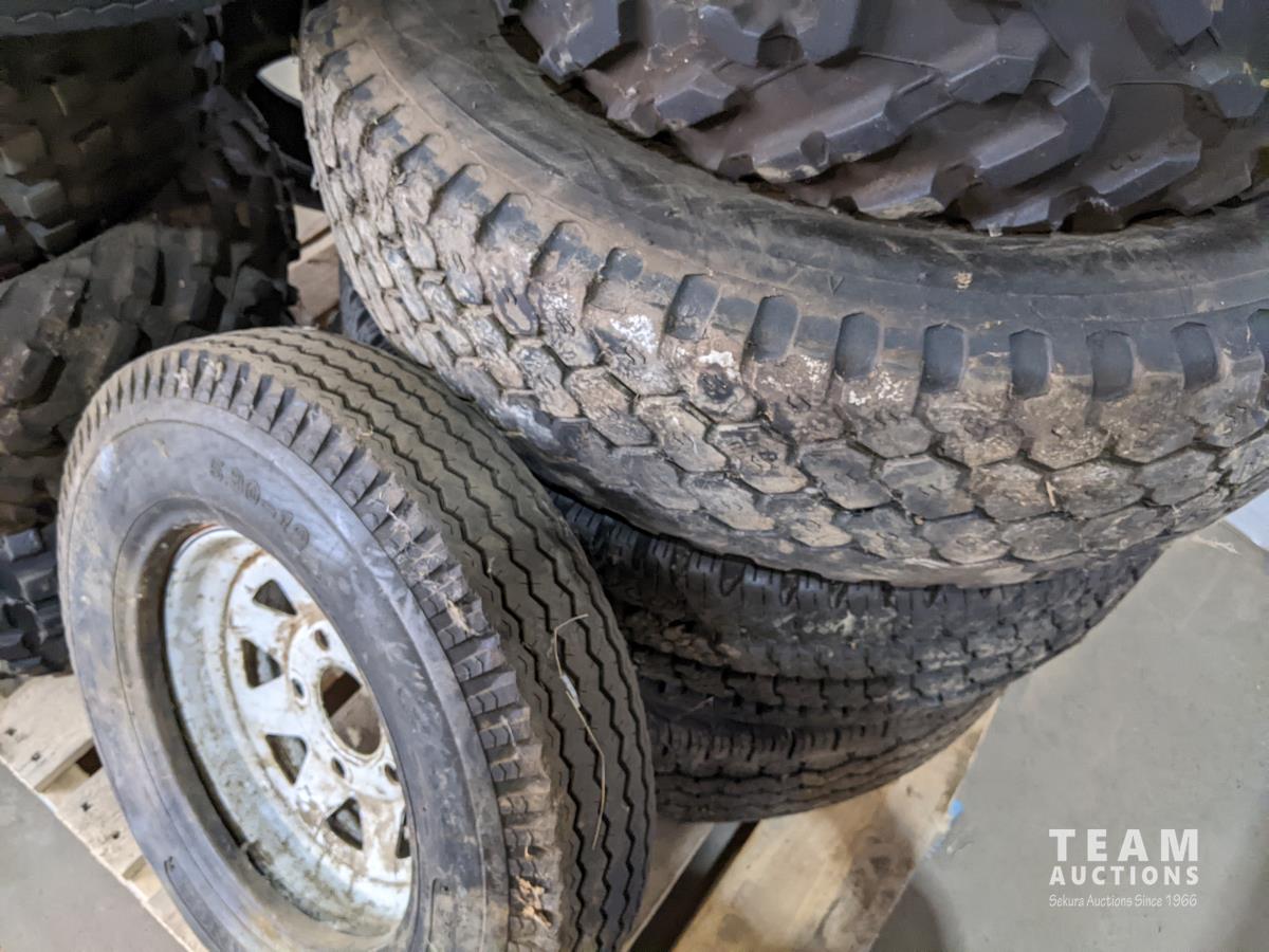 Pallet of assorted tires: 4.80-12.5. 30-12,4.80-8, ATV 25X8-12 (x20), 22X11.00-8 (x2), 235/85 R16 Bridgestone 245/75 R16, Michelin 235/85R16