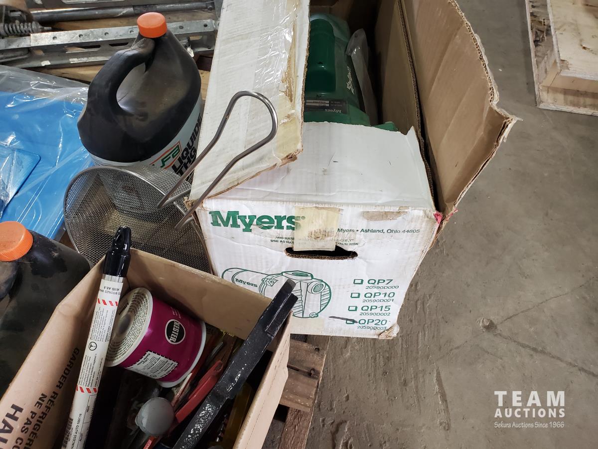 Mill/drill stand, Myers QP20 self priming centrifugal pump, box of screwdrivers, assorted tools