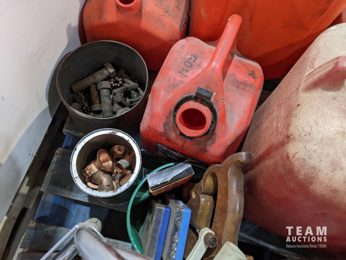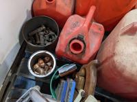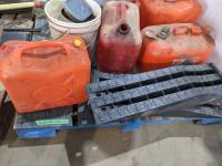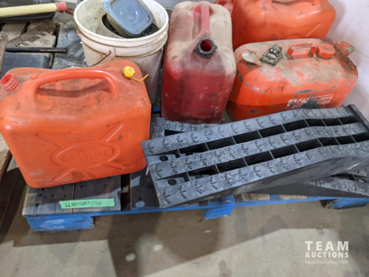 Ramps, gas cans, miscellaneous hardware, motorcycle wheel chocks