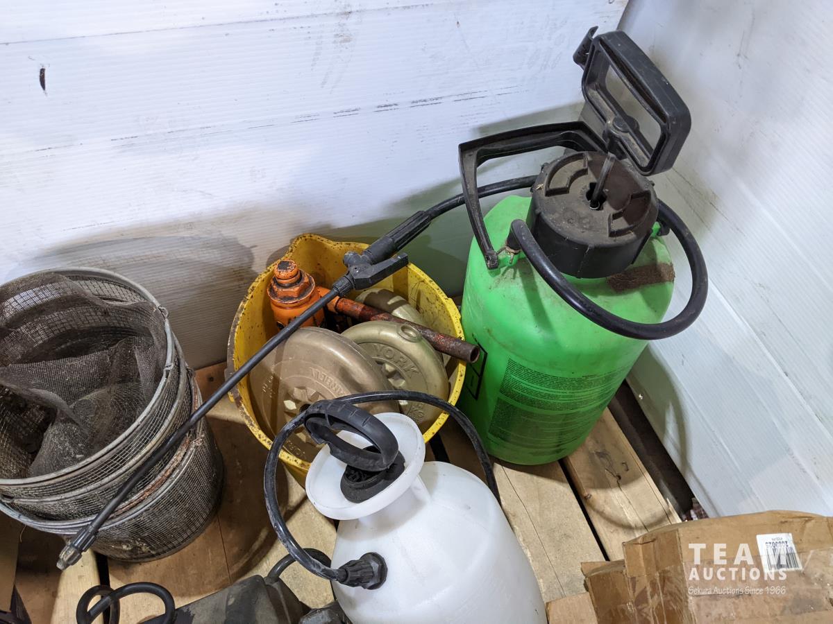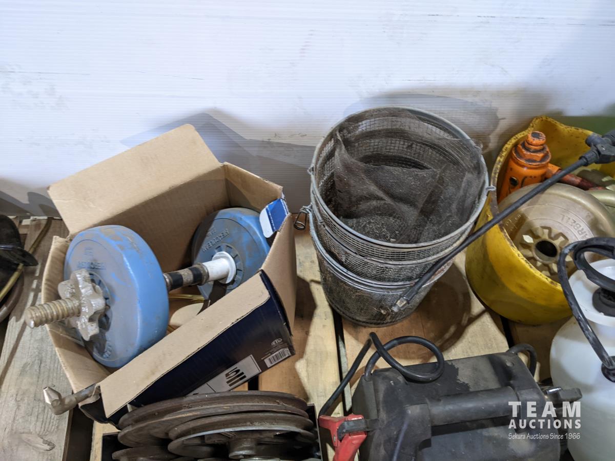 Booster pack, pulleys, washer baskets, sprayers, torches, miscellaneous hardware fittings
