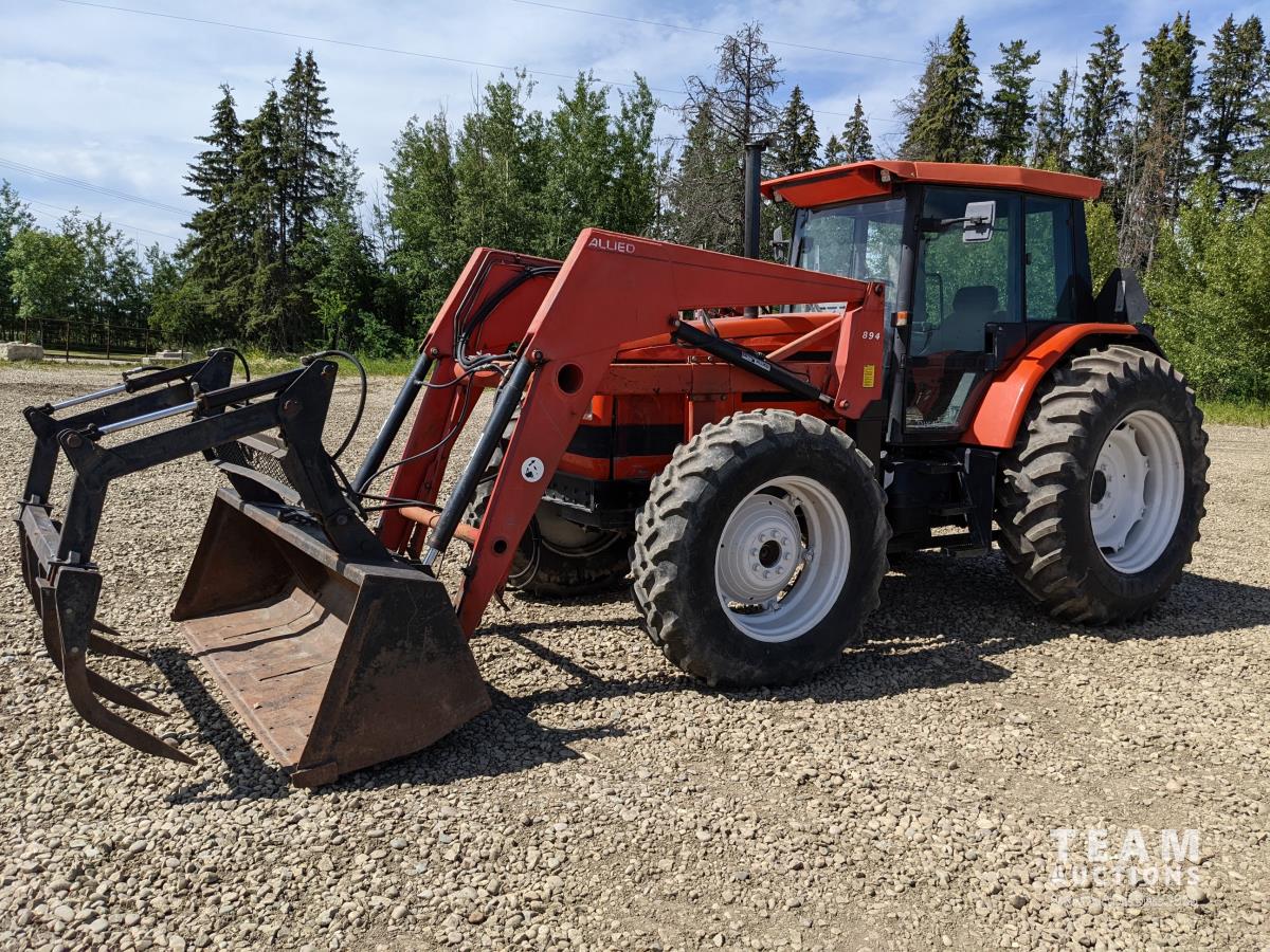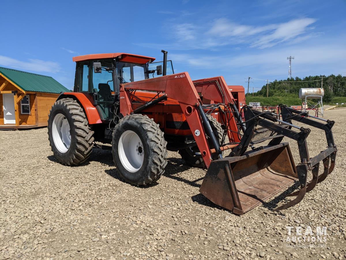 Allied 890 loader, bucket and grapple, joystick, 24 speed partial power shift transmission, 540/1000 PTO, 3 PT hitch, (3) hydraulic outlets, 14.8R30 front & 18.4-38 rear tires