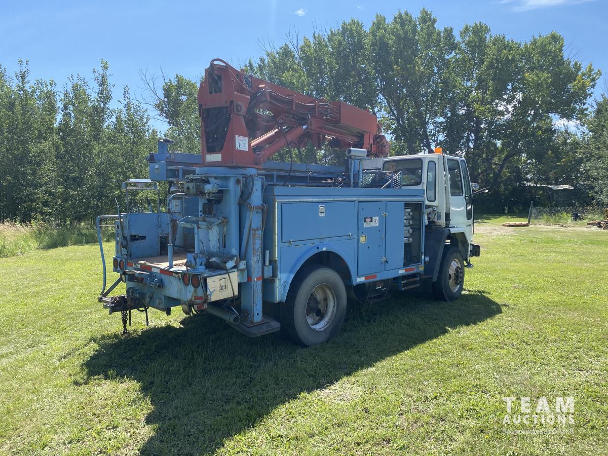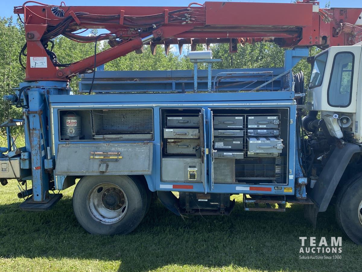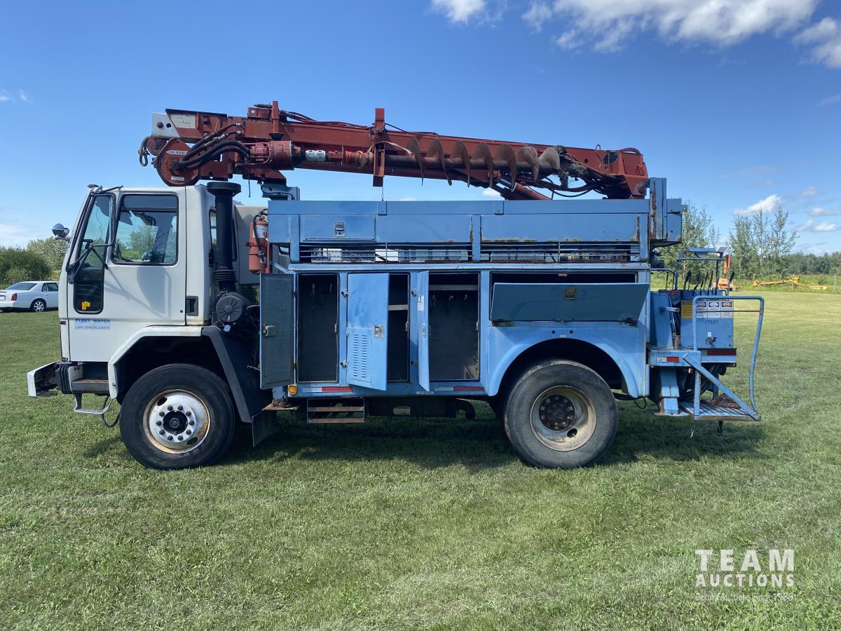 8.3 L, 6 cylinder, diesel, Thern Commander boom, mid mount outrigger, rear out riggers, rear controls, auger attachment, steel tool boxes, 11R22.5 tires