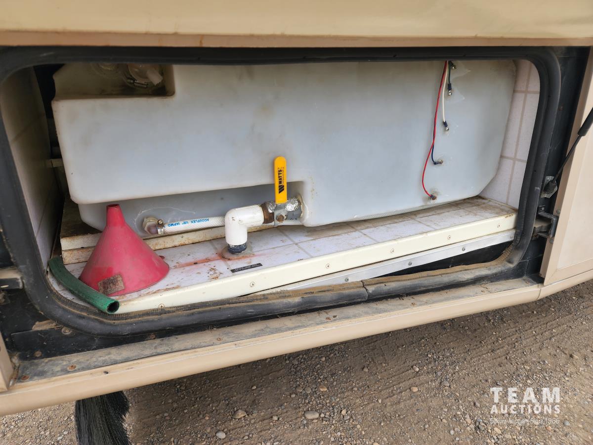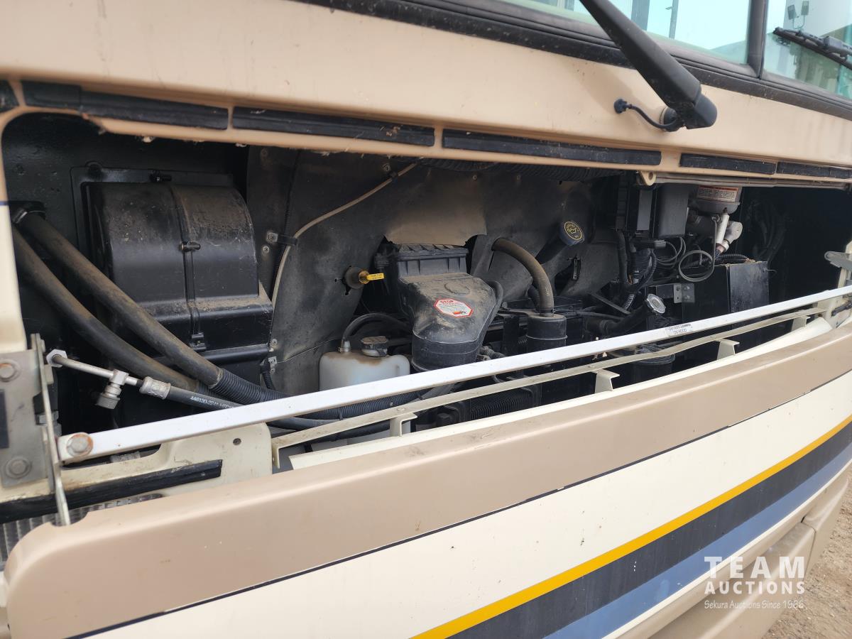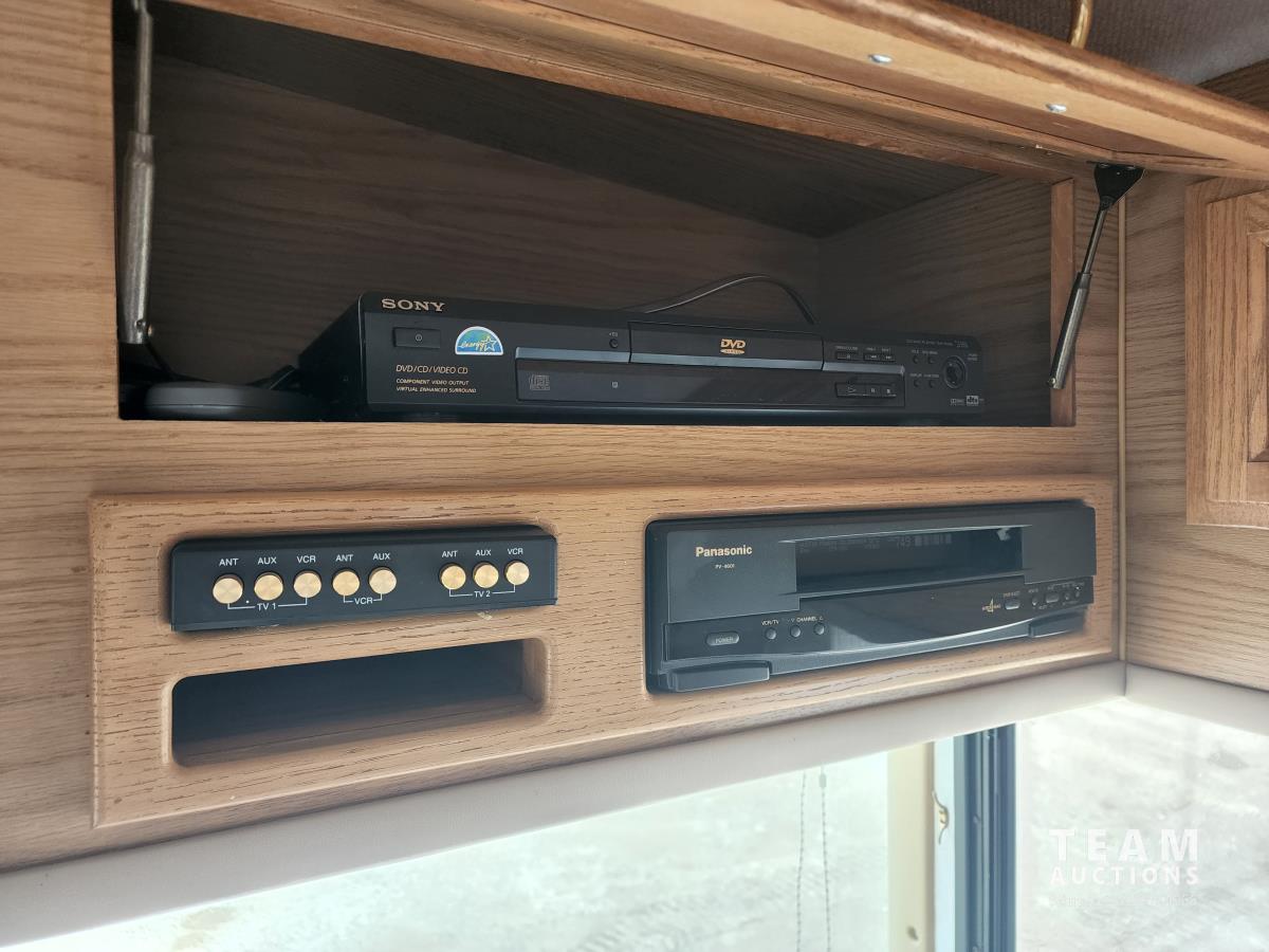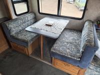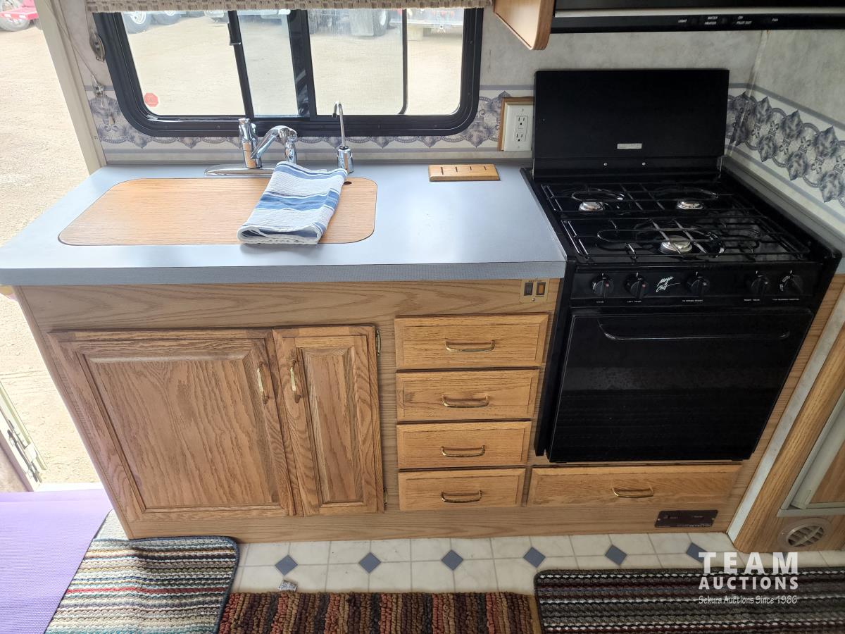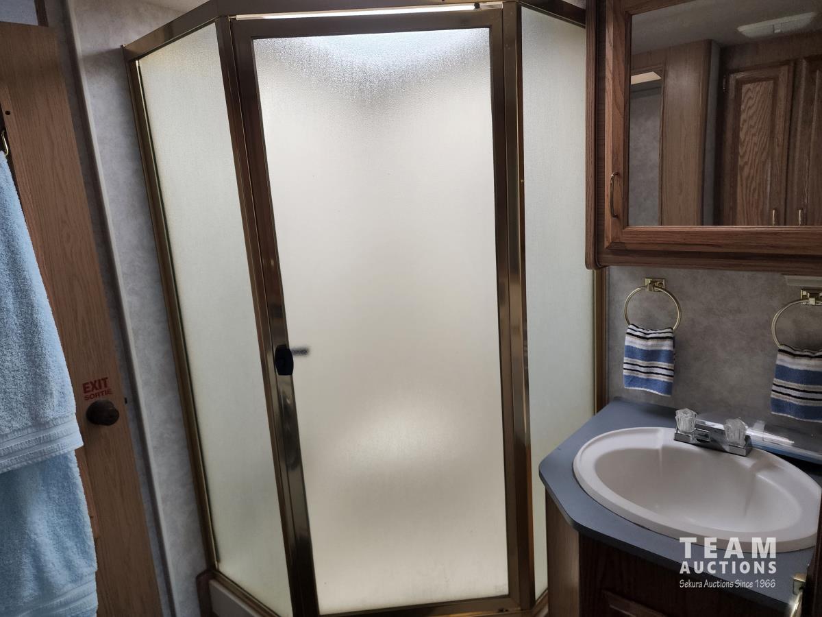 460 Ford engine (fuel injected), one 13 ft slideout, 18 ft awning, (2) top a/c units, dash a/c, fridge, stove, microwave, sofa, (2) chairs, dinette, backup camera, new air mattress, (2) TV's, DVD player, tag axle, Onan 5000w generator, 1250w inverter, sleeps 4, 235/85R16 dual tires