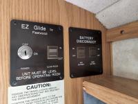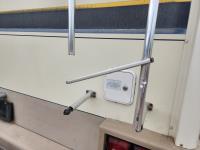 Rung broken on rear ladder, electric step is broken. Park brake light stays on after leveling jacks are raised (possibly a sensor)