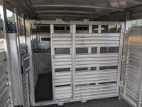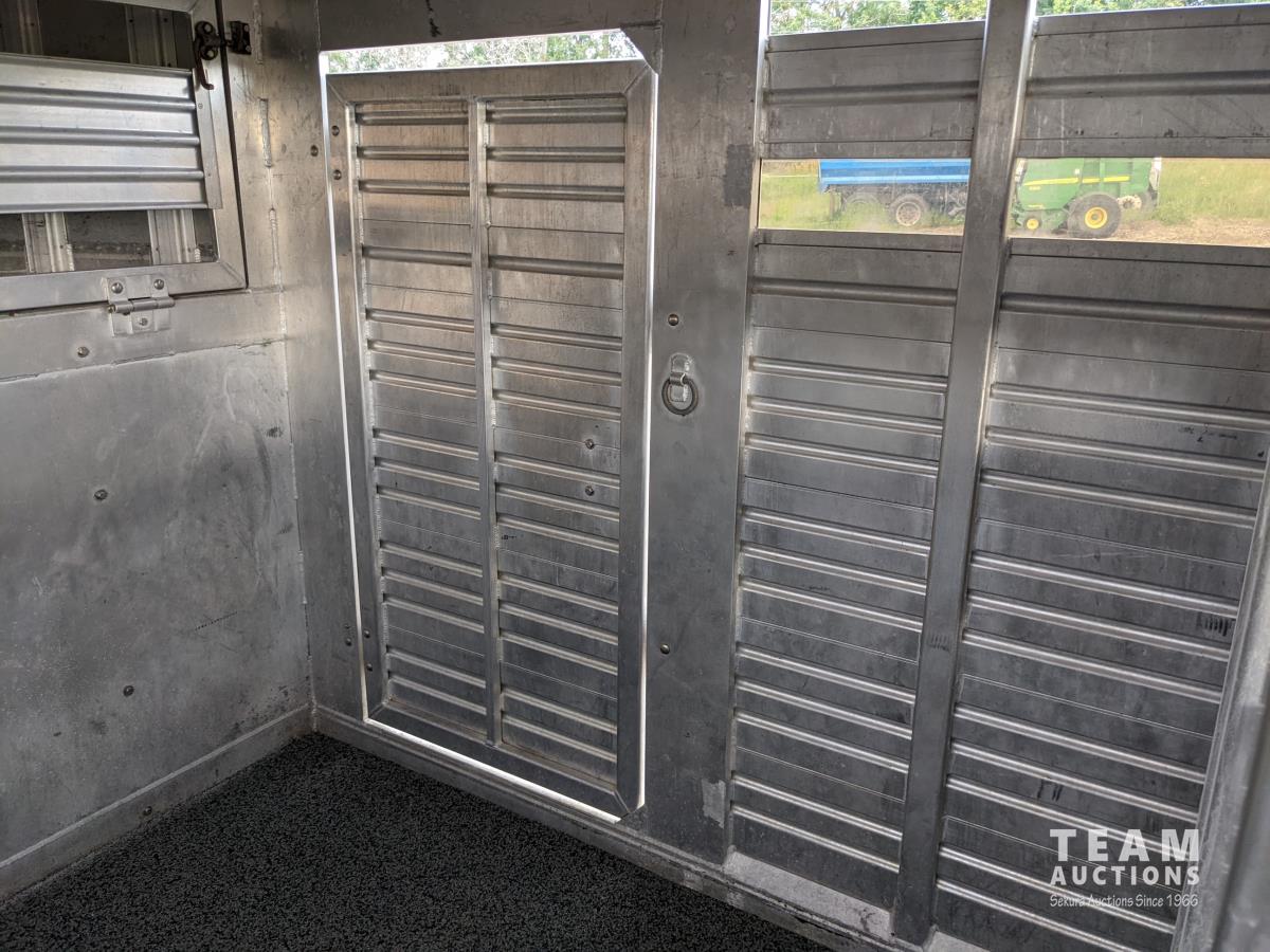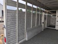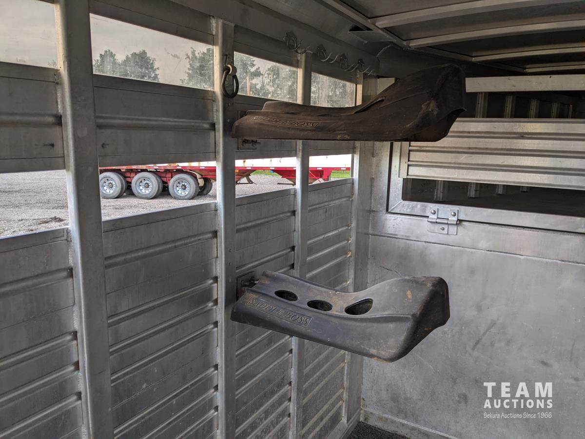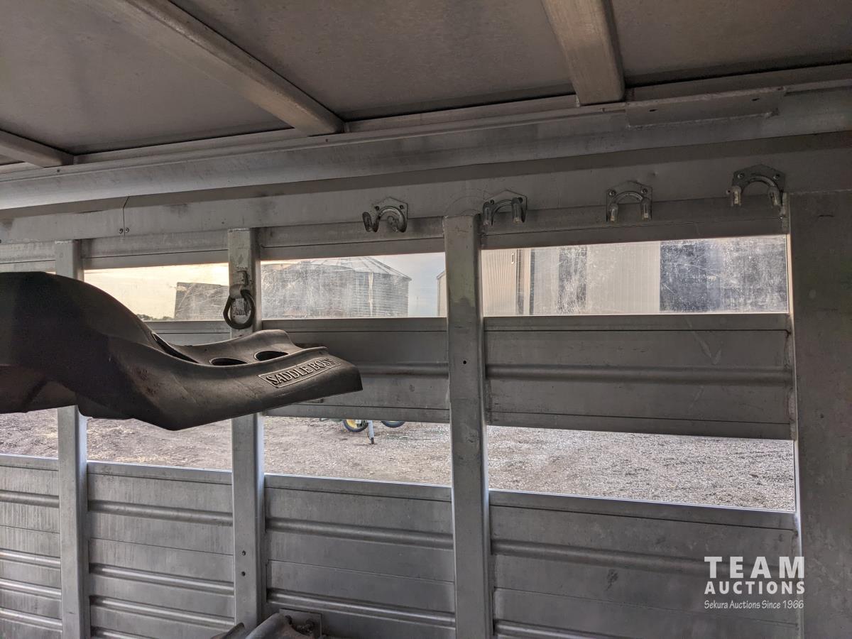 7 ft wide, over neck storage, (2) saddle holders, tack hooks, (2) position center divider with sliding door, full swing rear door with sliding door, right side man door, 2-5/6 inch ball, 7000 lb axles, new Hoof Grip rubber livestock floor, new 235/80R16 tires