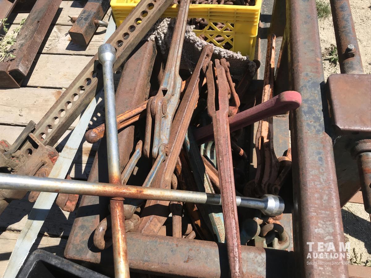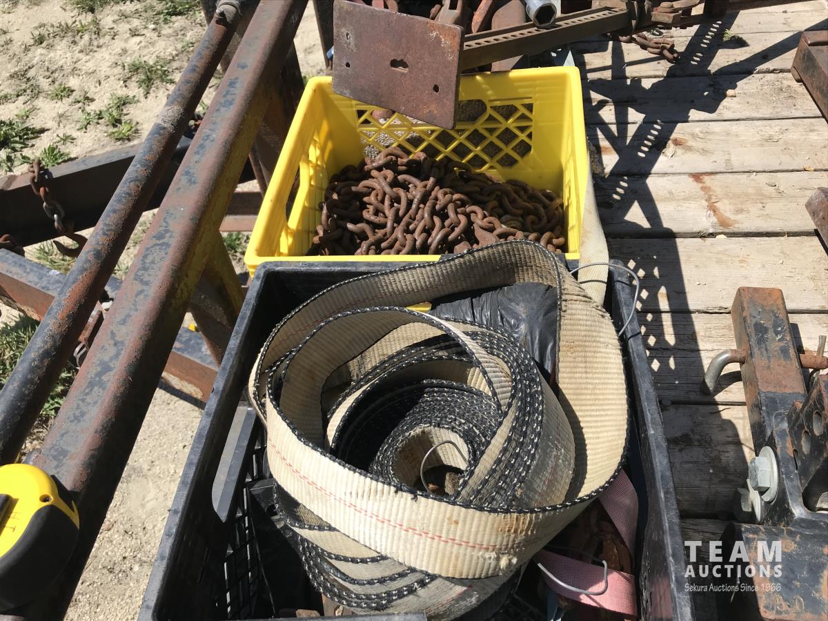 80 inch wide, spring suspension, chains, straps, boomers, load leveler hitch, ramps, 245/75R16 tires