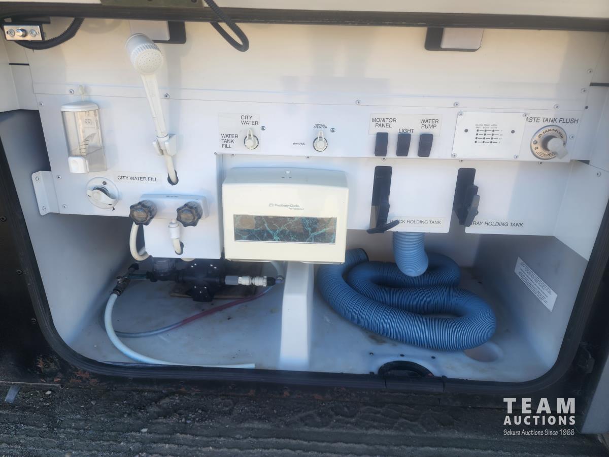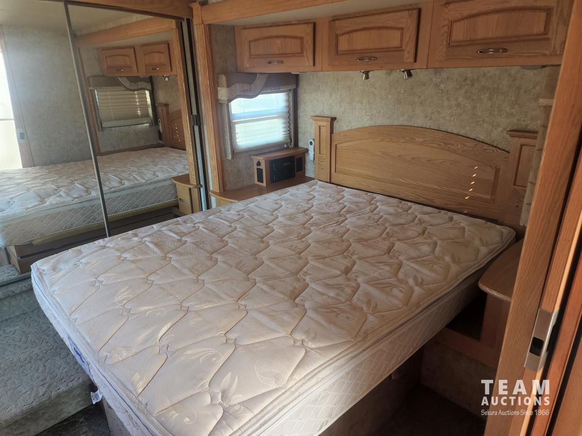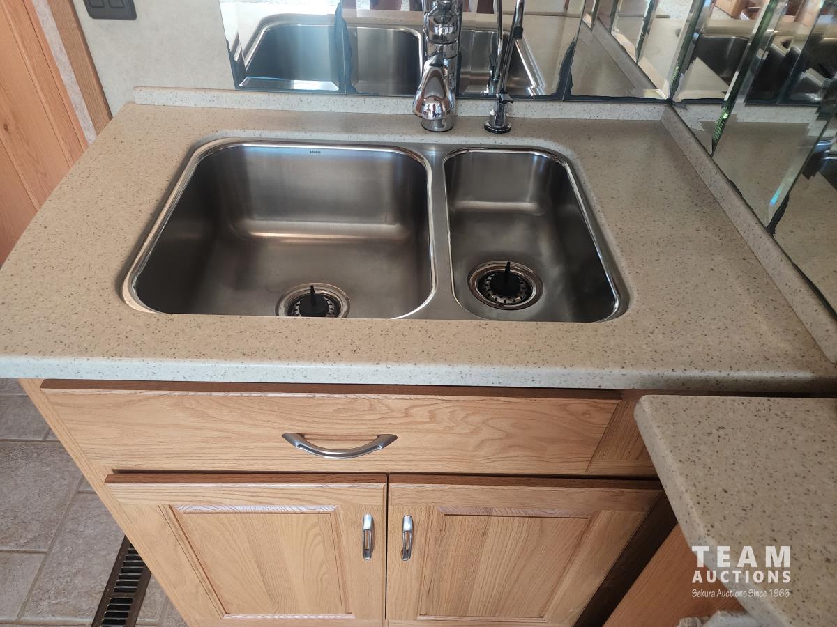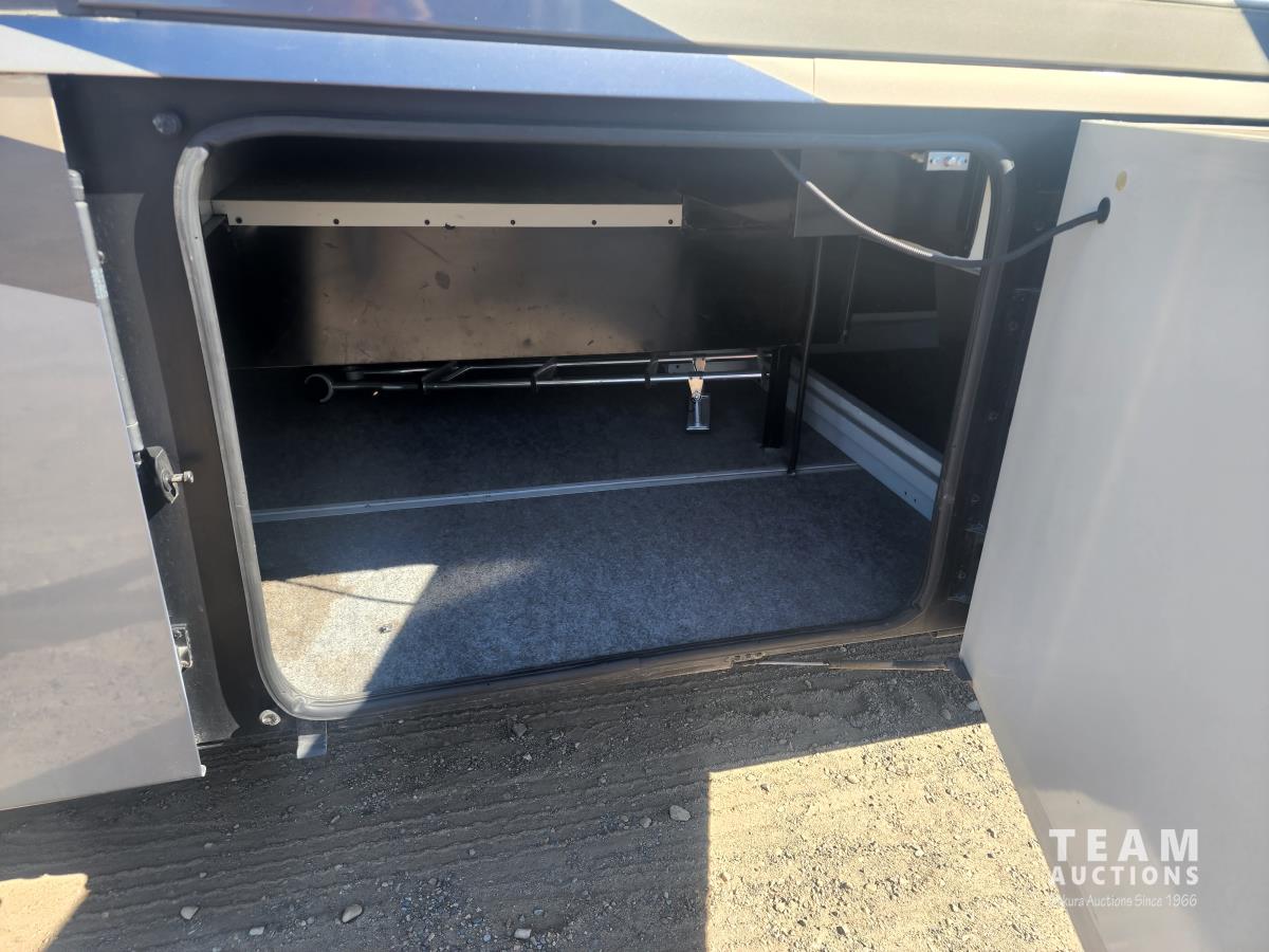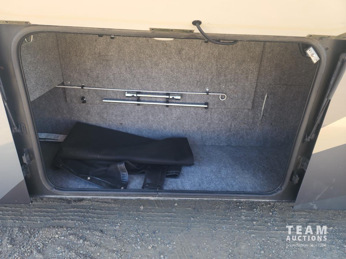 Cat 360 engine, Alison auto transmission, (3) slide outs, hydraulic leveling, fridge, stove, microwave, washer/dryer combo, queen bed, large bathroom, power reclining loveseat, TV, a/c, dinette, double fridge, side pantry, outdoor stereo, backup camera, 295/75R22.5 tires on aluminum rims