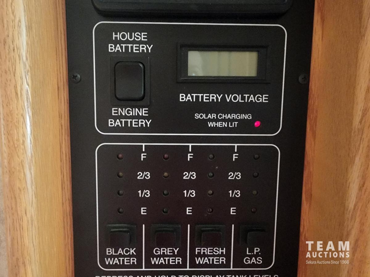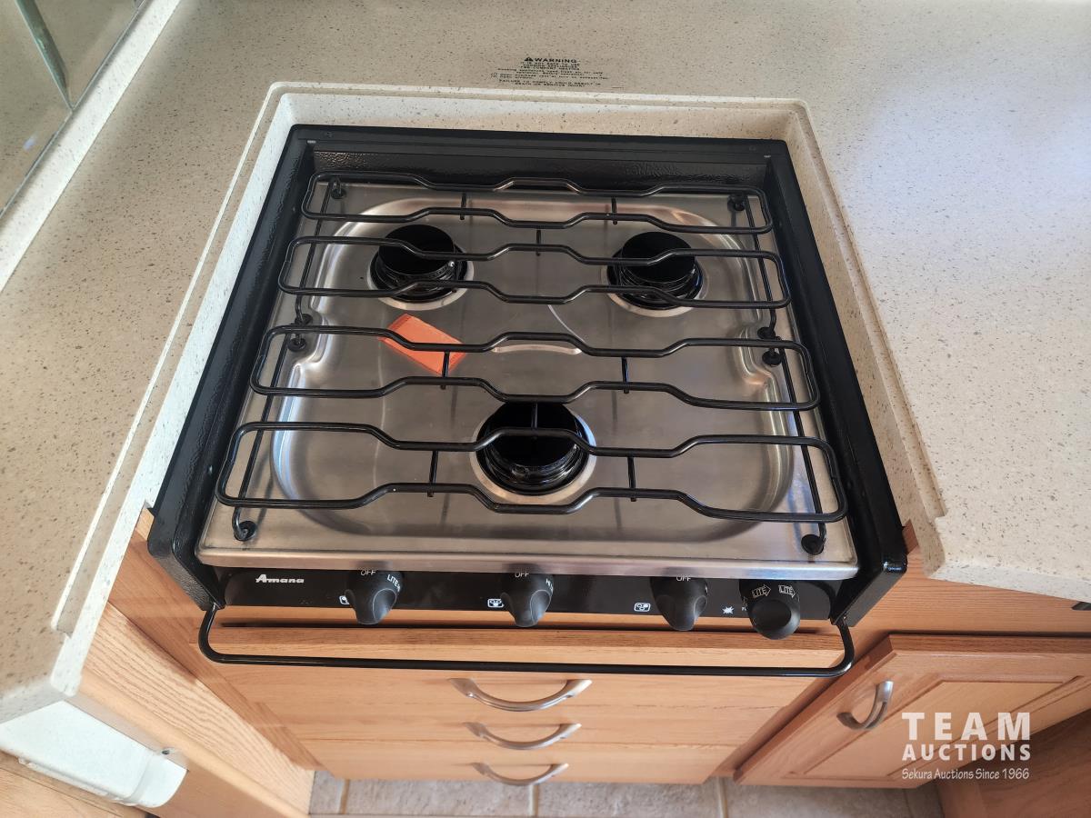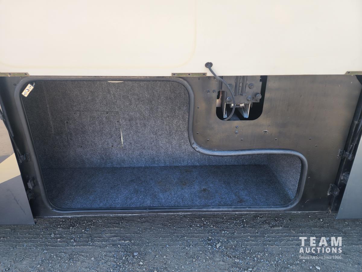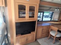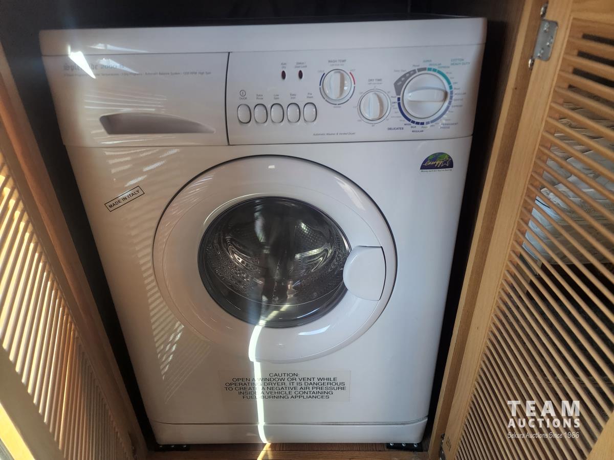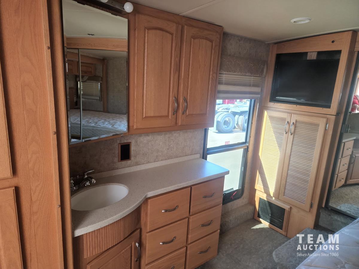 Cat 360 engine, Alison auto transmission, (3) slide outs, hydraulic leveling, fridge, stove, microwave, washer/dryer combo, queen bed, large bathroom, power reclining loveseat, TV, a/c, dinette, double fridge, side pantry, outdoor stereo, backup camera, 295/75R22.5 tires on aluminum rims