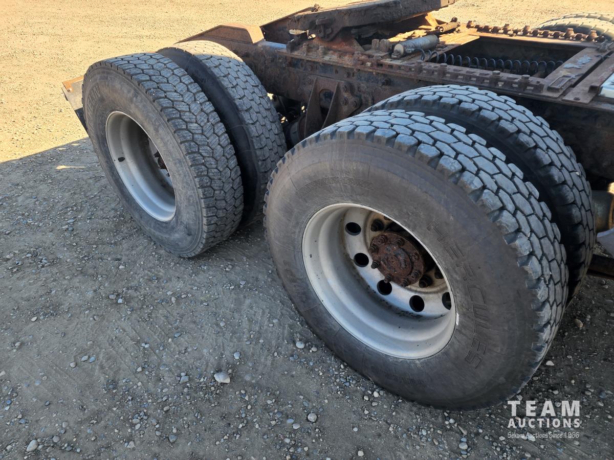 Cummins 435 HP engine, 13 speed transmission, 40,000 lb rears, air ride suspension, Webasto heater, sliding 5TH wheel, 11R22.5 inch tires on aluminum rims