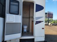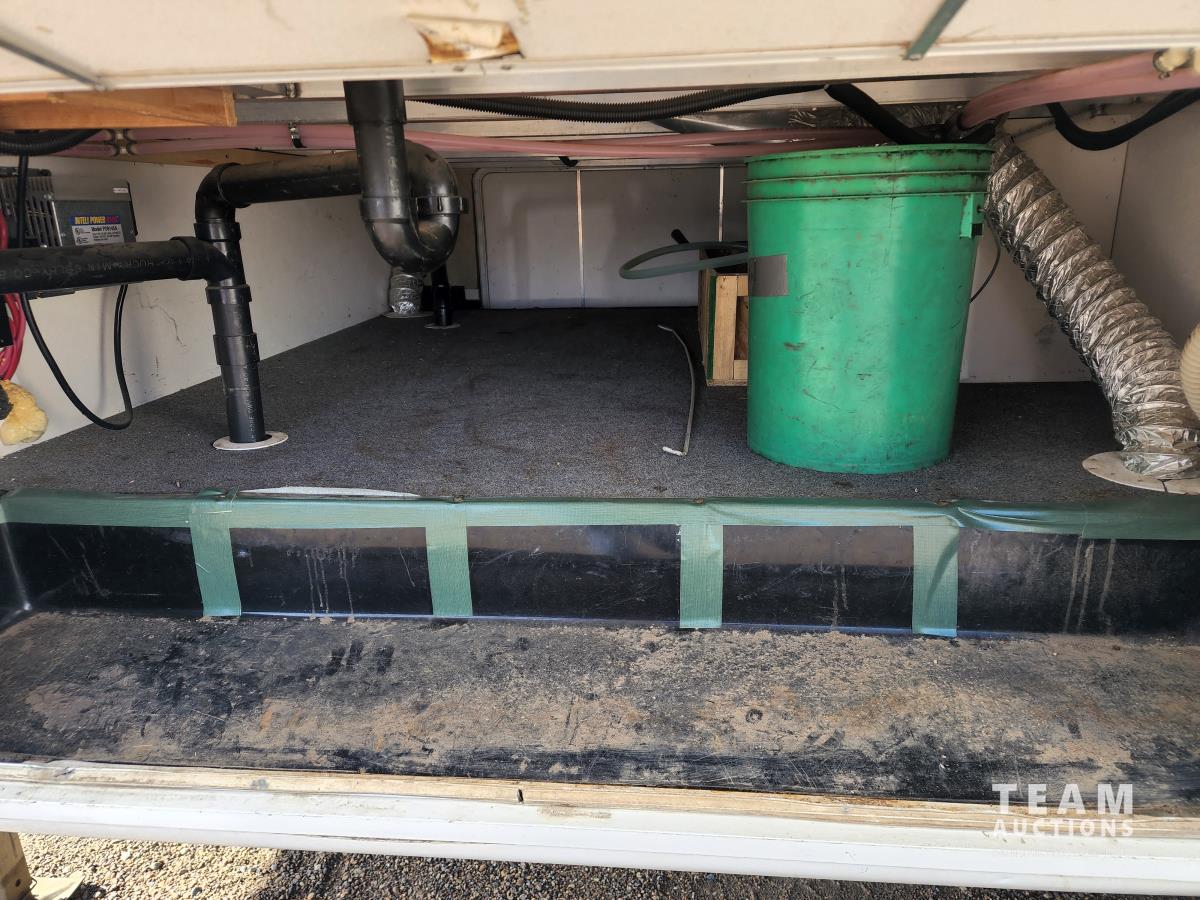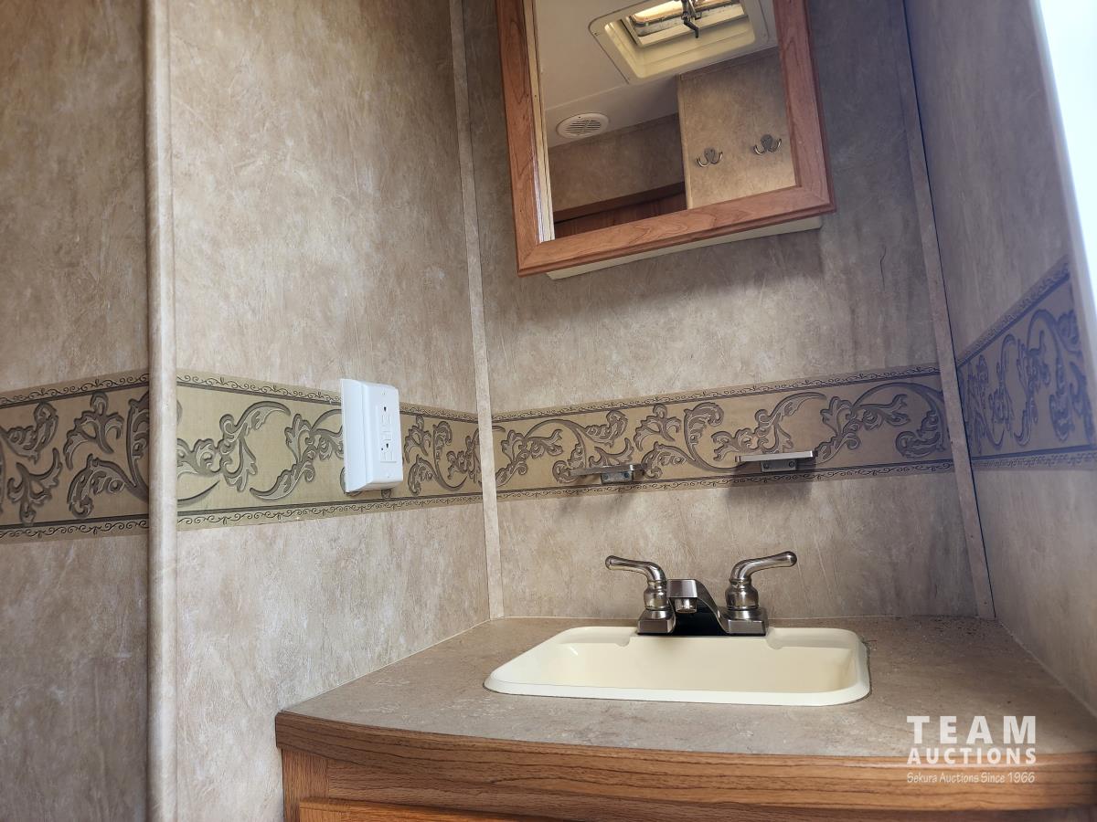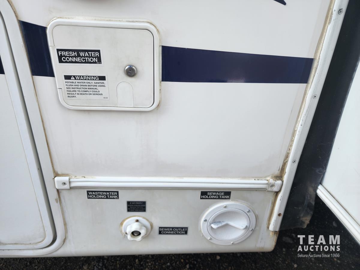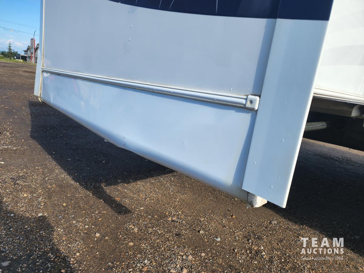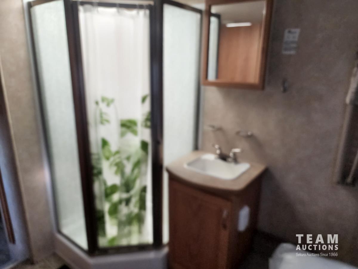 New battery, showerhead and new handles/locks. Please note there is no bunk room door, couch and no front glass in the shower. There is a few dents in the bottom of the one slide which does not affect its use. Was recently detailed.
