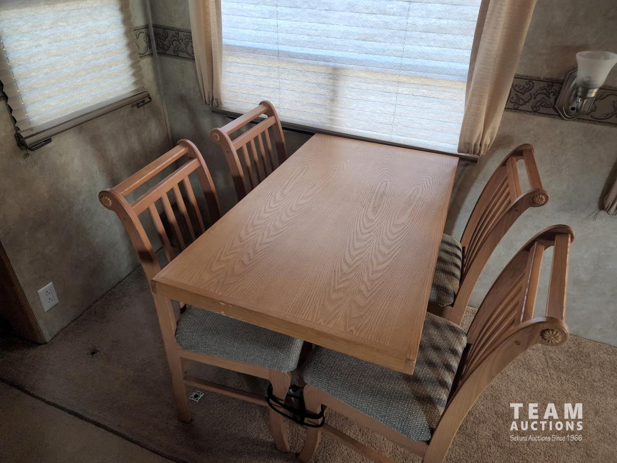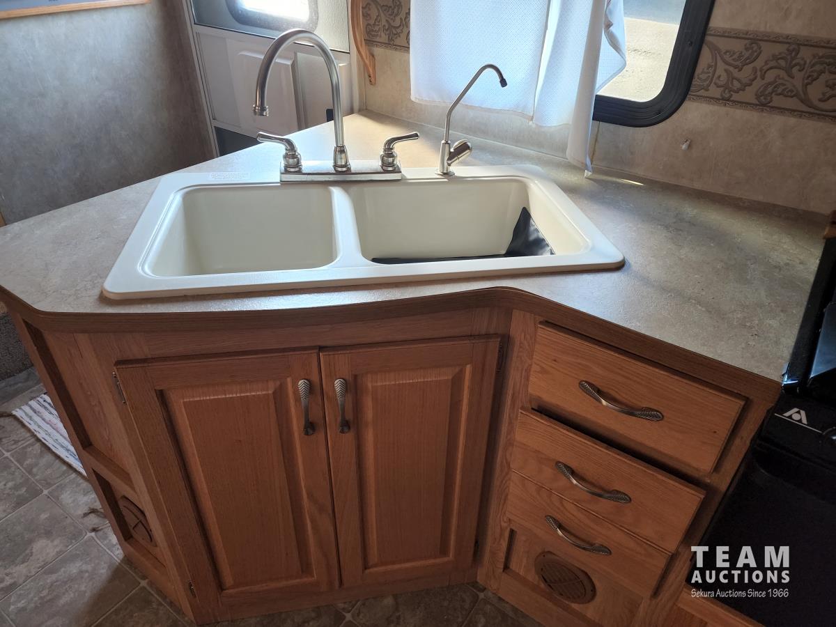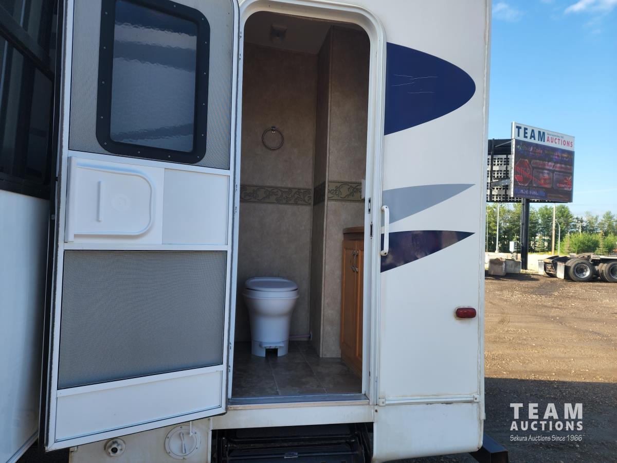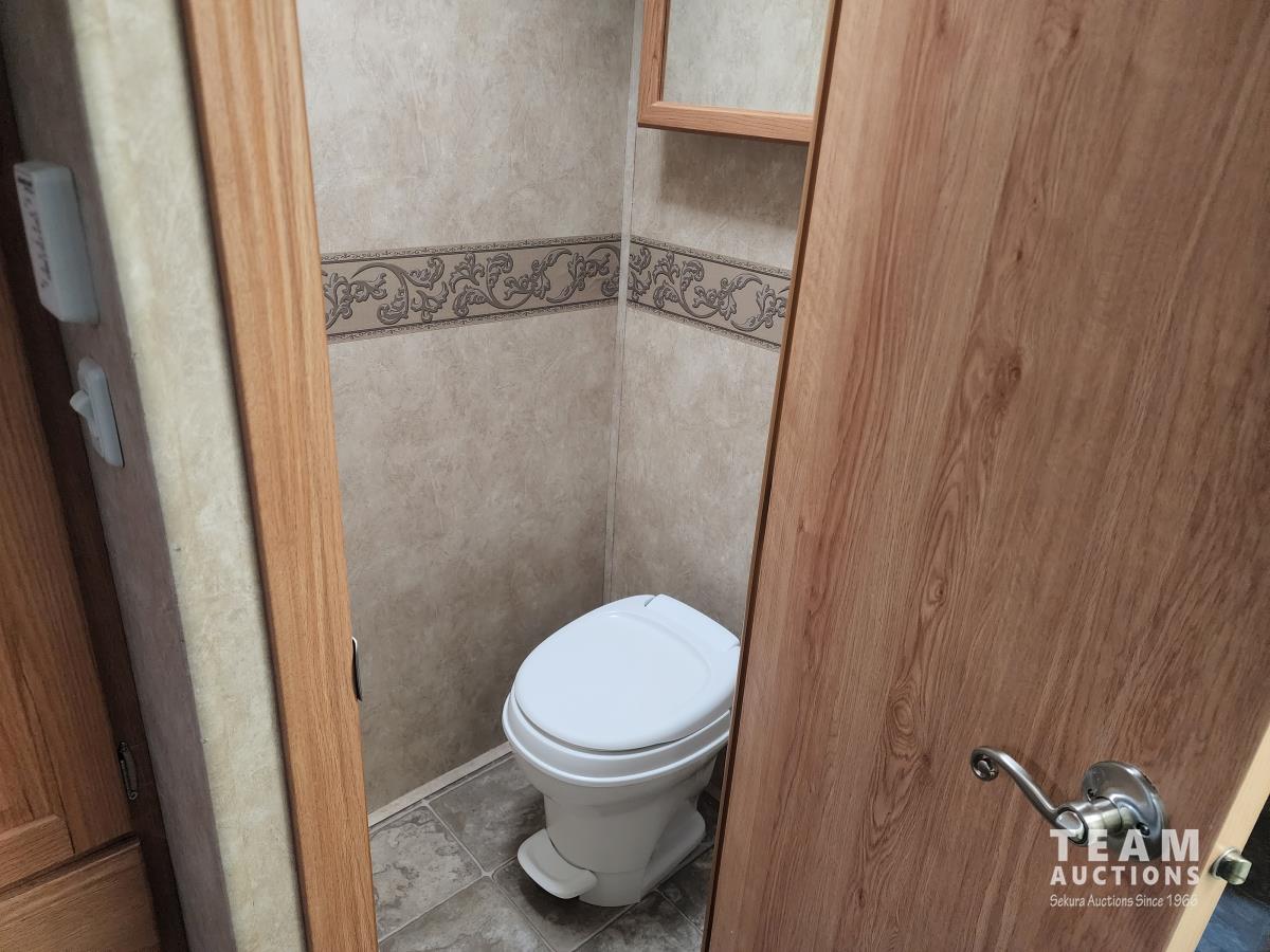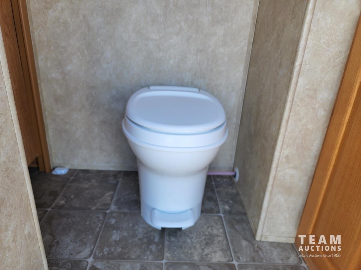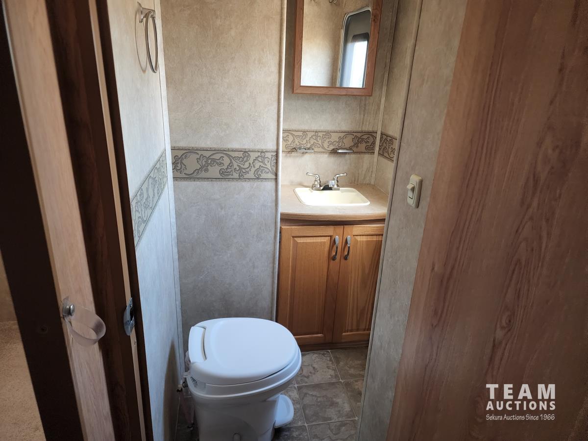 New battery, showerhead and new handles/locks. Please note there is no bunk room door, couch and no front glass in the shower. There is a few dents in the bottom of the one slide which does not affect its use. Was recently detailed.
