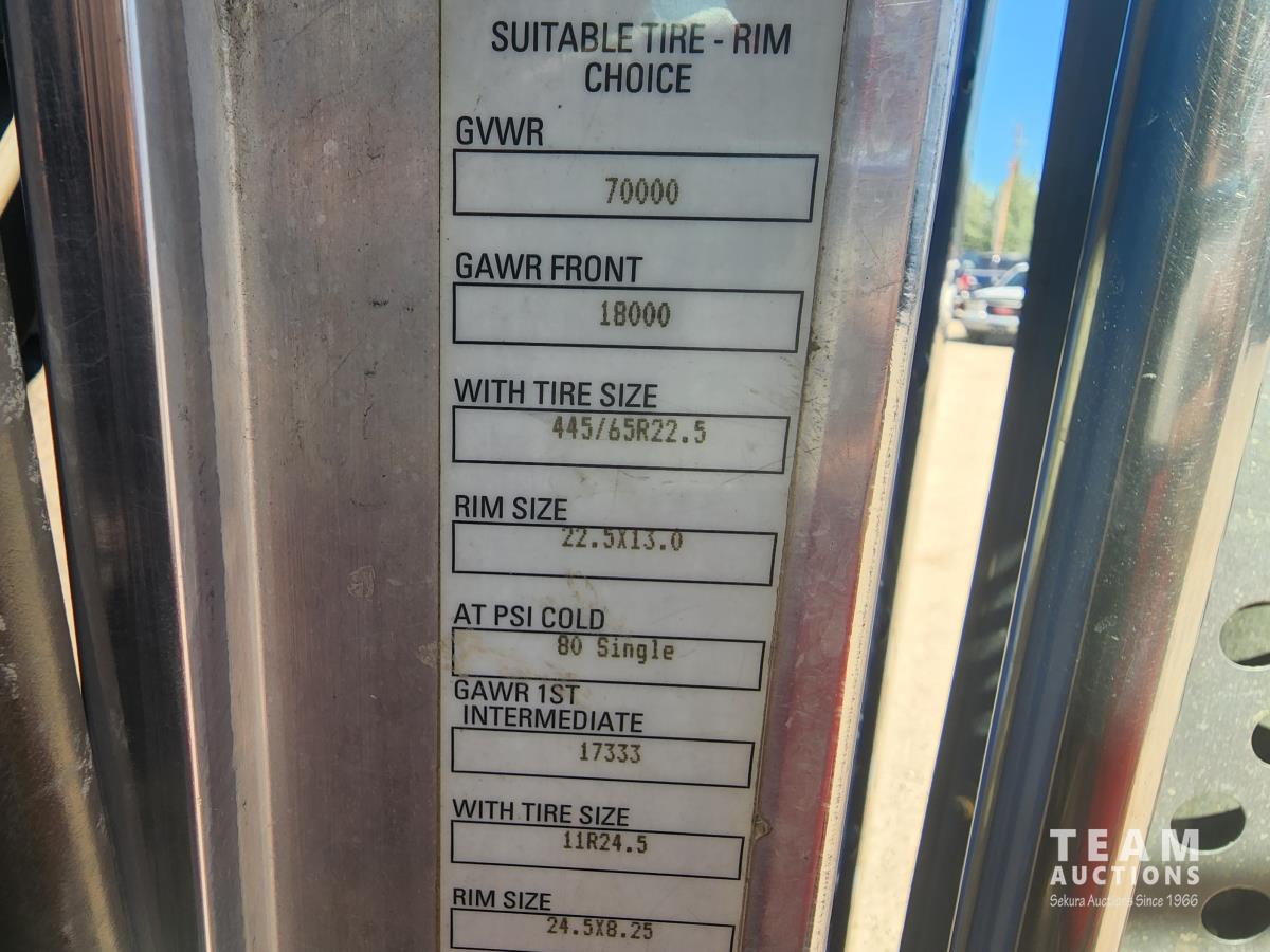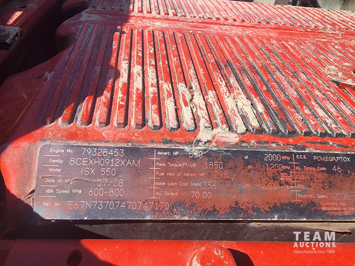 Deleted Cummins ISX 550 engine, Eaton Fuller 18 speed w/ 2 speed aux transmission, air ride suspension, 20,000 lb front, 46,000 lb rears, differential locks, 46 inch sleepre, heated tool boxes c/w fittings, top walkway, front and rear sumps, Jasper Tank stainless TC 407 tank, internal plumbing, 11R24.5 inch tires on aluminum rims