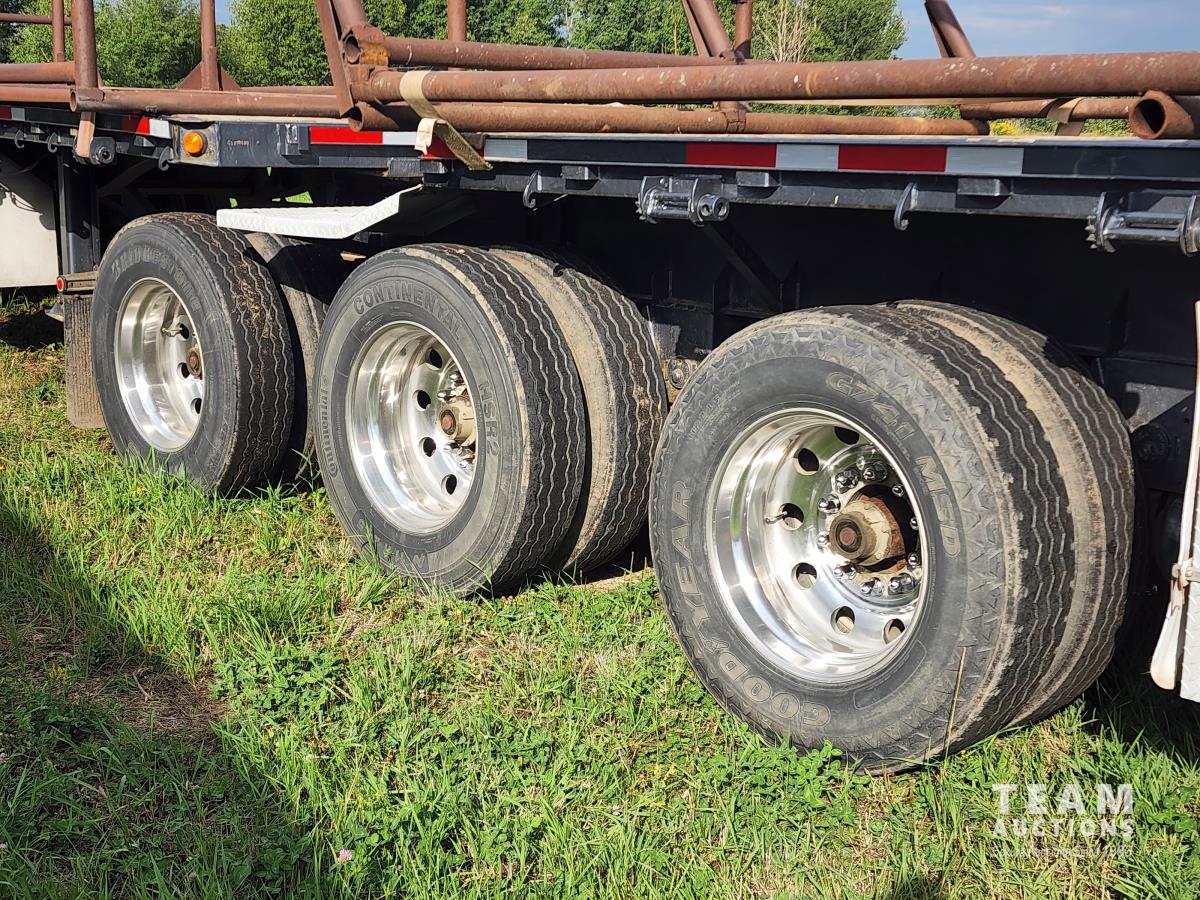 32 ft lead, 28 ft pup, air ride suspension, storage boxes, stake pockets, (3) lift axles, aluminum rims, 11R24.5 tires