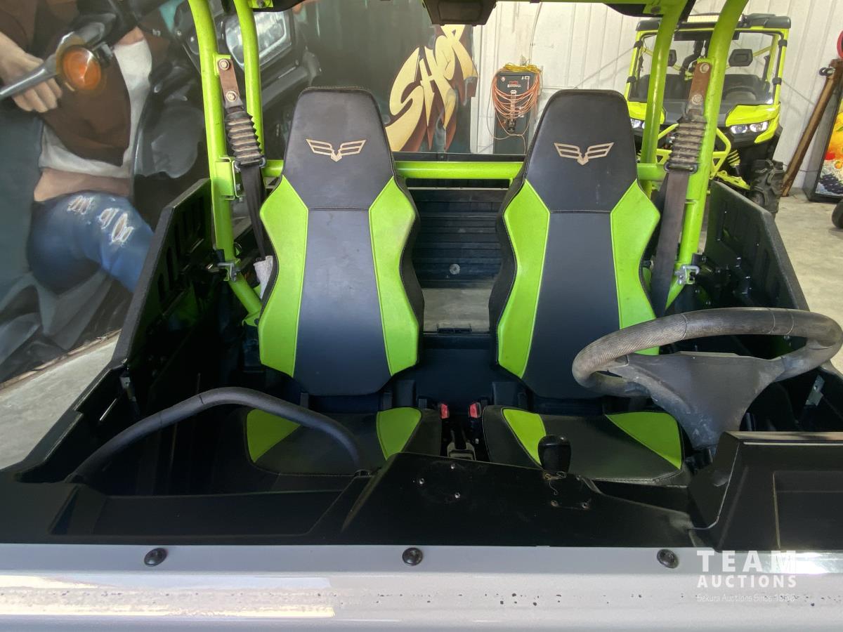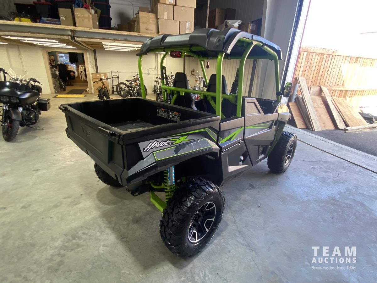 Built by TEXTRON Military UTV builders. Super hard to find HAVOC X with King shocks. 2.5-inch King Piggyback Reservoir Shocks, 12.8-inch front and 12.9-inch rear suspension travel -2000 lb towing capacity -600 lb dump bed -3368 km -4500 lb Winch with Wireless Remote & -Synthetic Rope -New Rear Tires and Brakes -Roof -Tilting Dump Box -King Racing Shocks -Power & Tilt Steering -28 x 10.00R14 tires -Oil Serviced & Ready to Ride