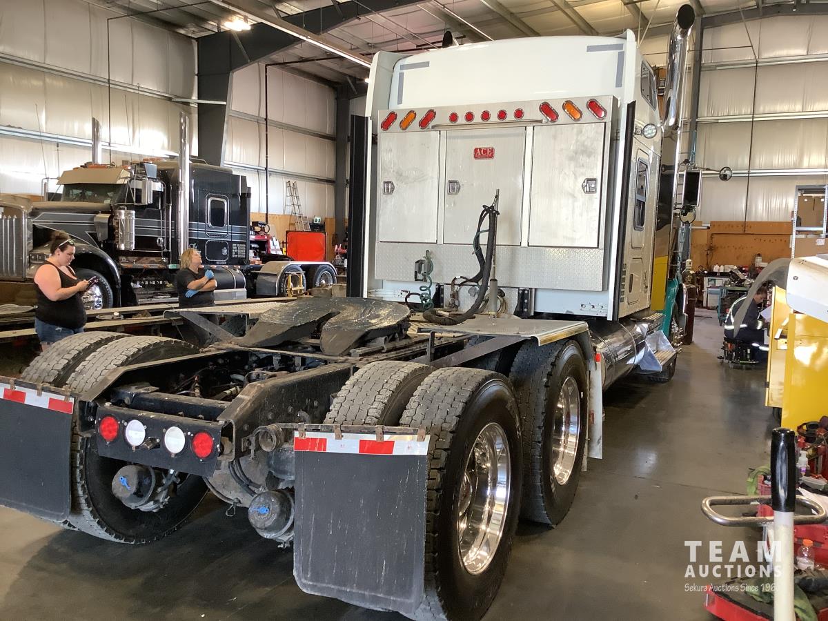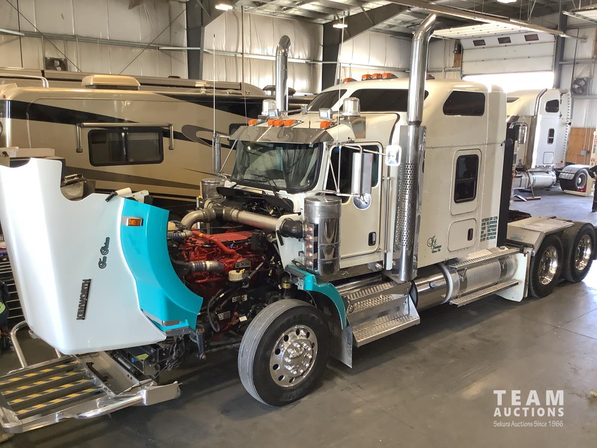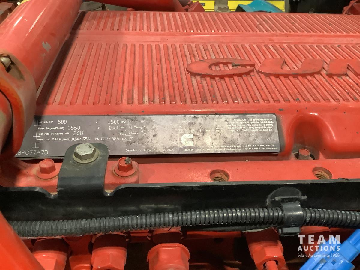 X-15 engine 500 HP (not deleted), engine brake, 18 speed transmission, 46,000 rears with lockers, air ride suspension, front rue bar, engine and bunk heater, power inverter, beacon lights, 11R24.5 inch tires on aluminum rims