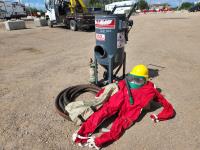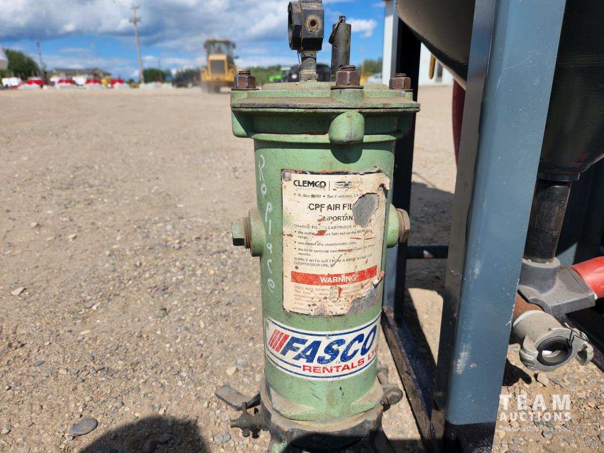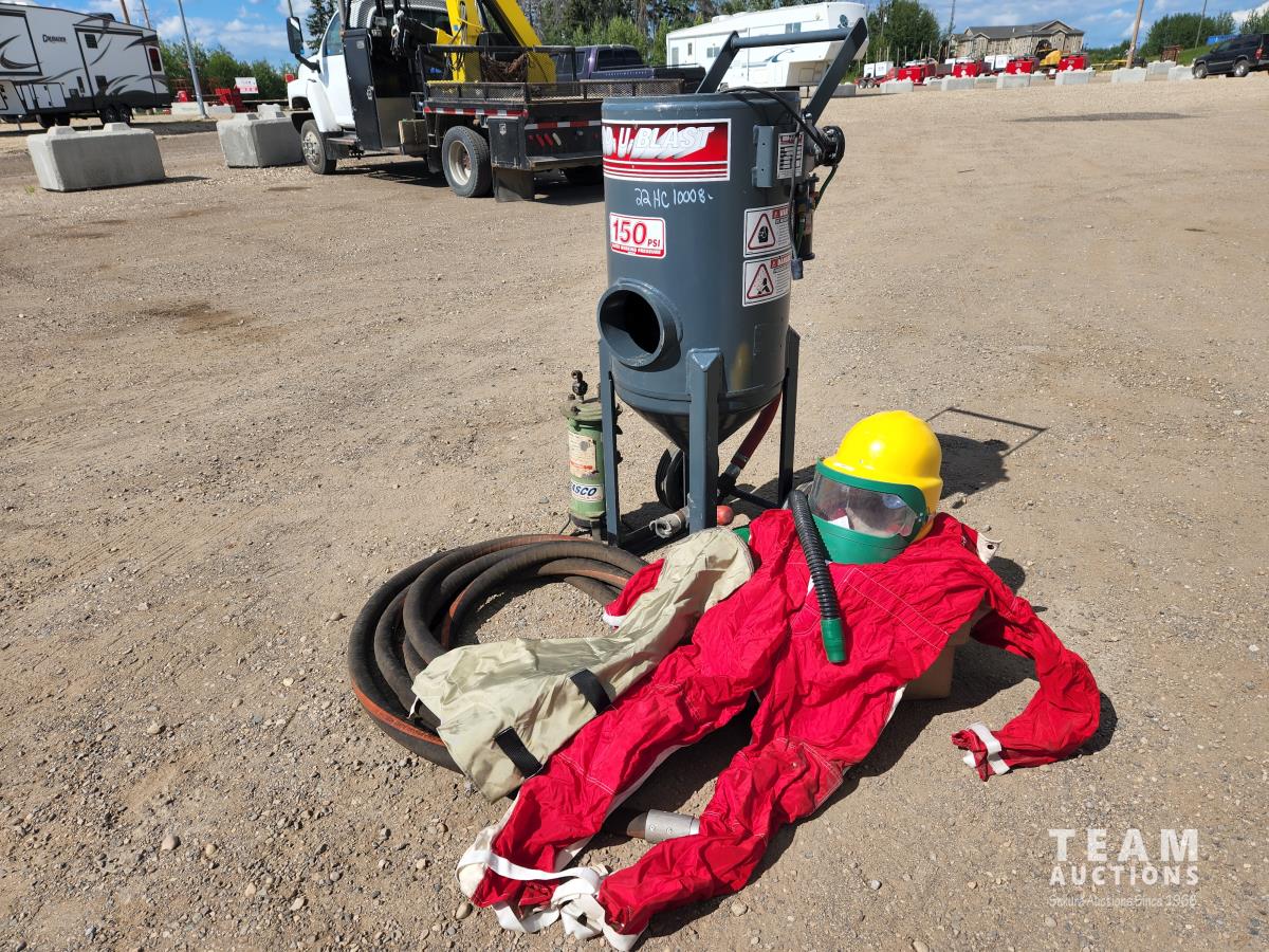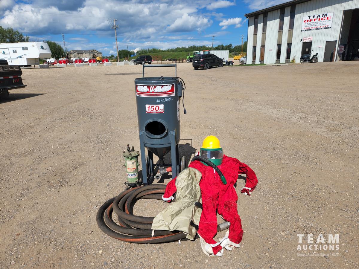 150 PSI, c/w hose, suit, helmet and air filter pot and tote of sand