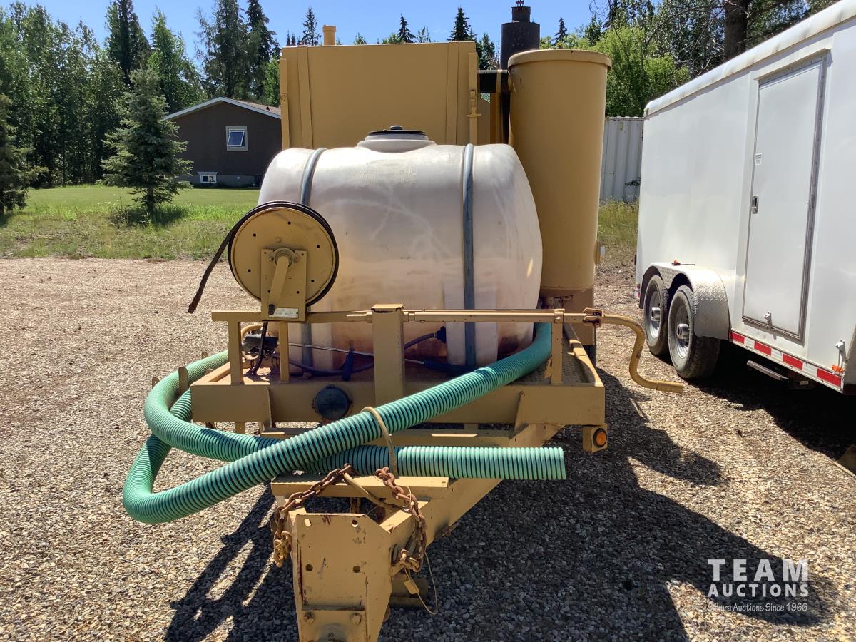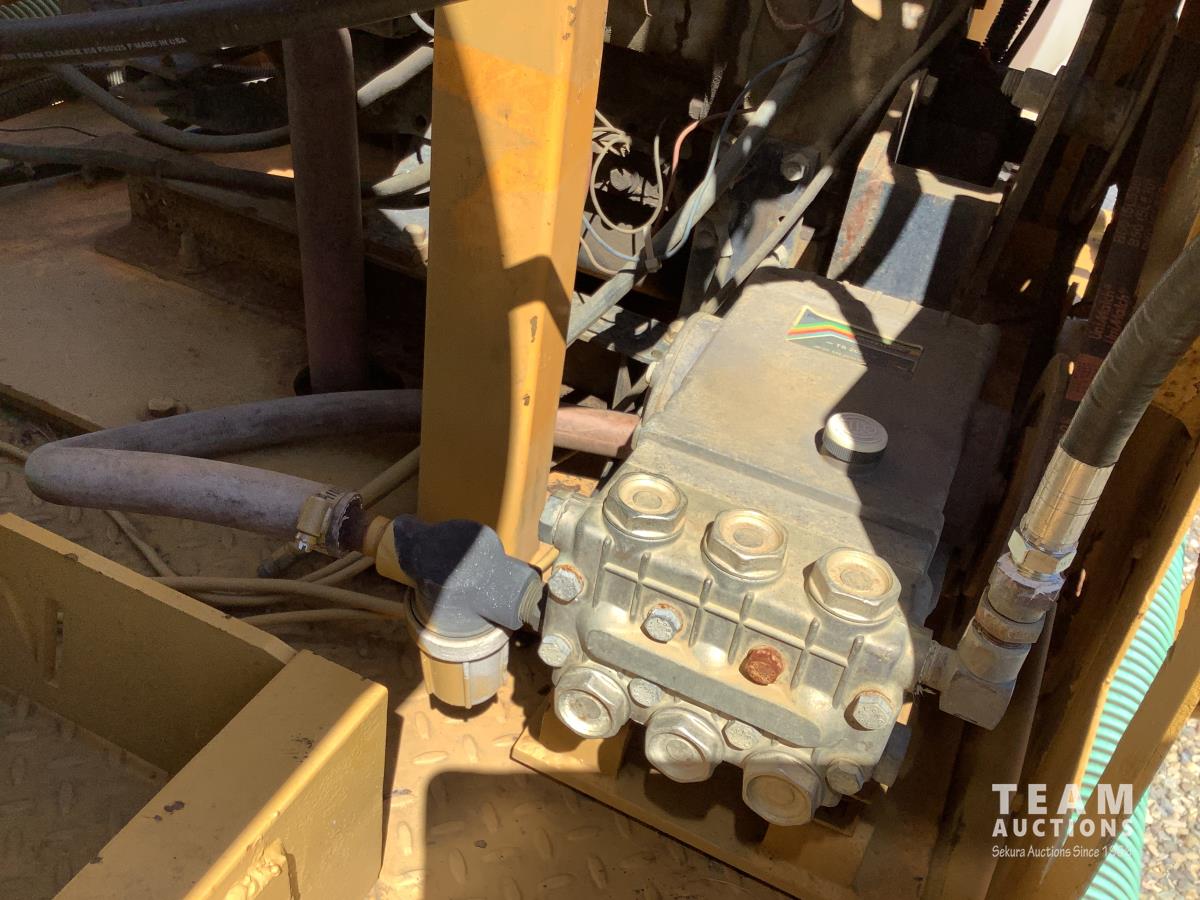 diesel powered engine, water holding tank, pressure washer, hose reel, wash wand boiler, tank has a hoist and rear door opens for dumping, tandem 7,000 pound axels, real good tires