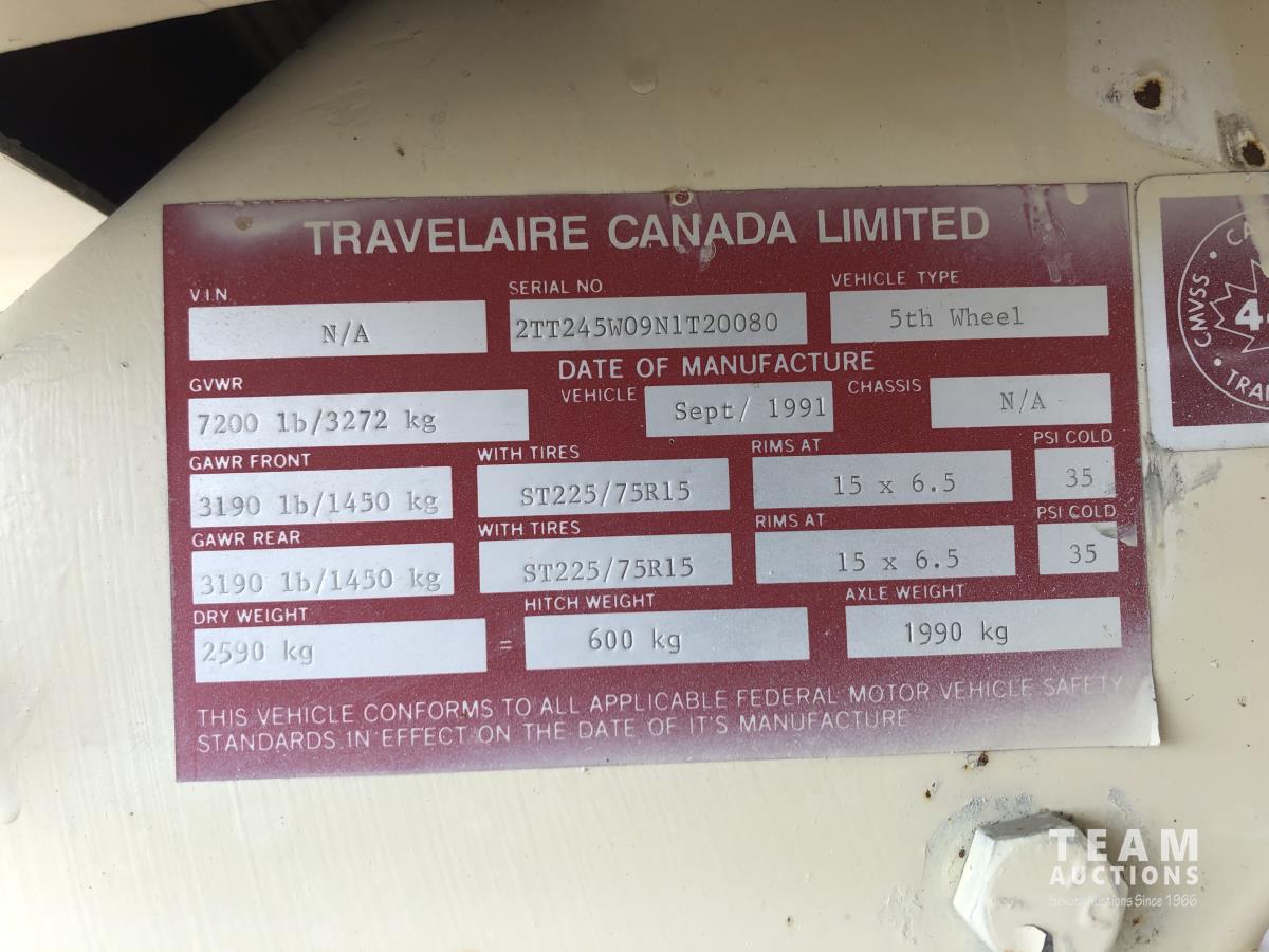 328 1991 Travelaire TW245 24 Ft T/A Fifth Wheel Travel Trailer