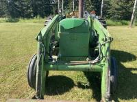 John Deere 148 front end loader, 60 inch bucket, 3 PT, 540 PTO, tire chains, 7.50-16SL front tires, 18.4-30 rear tires