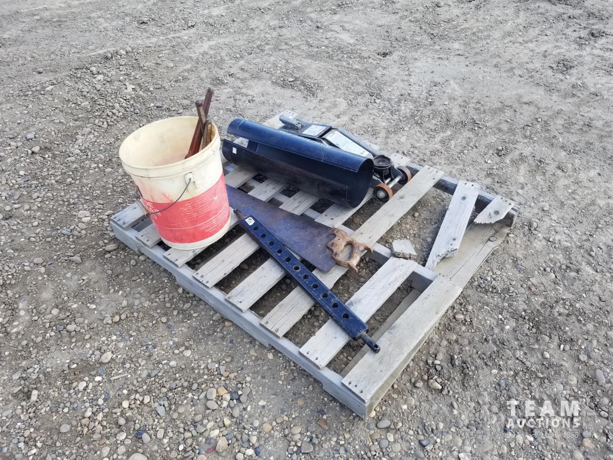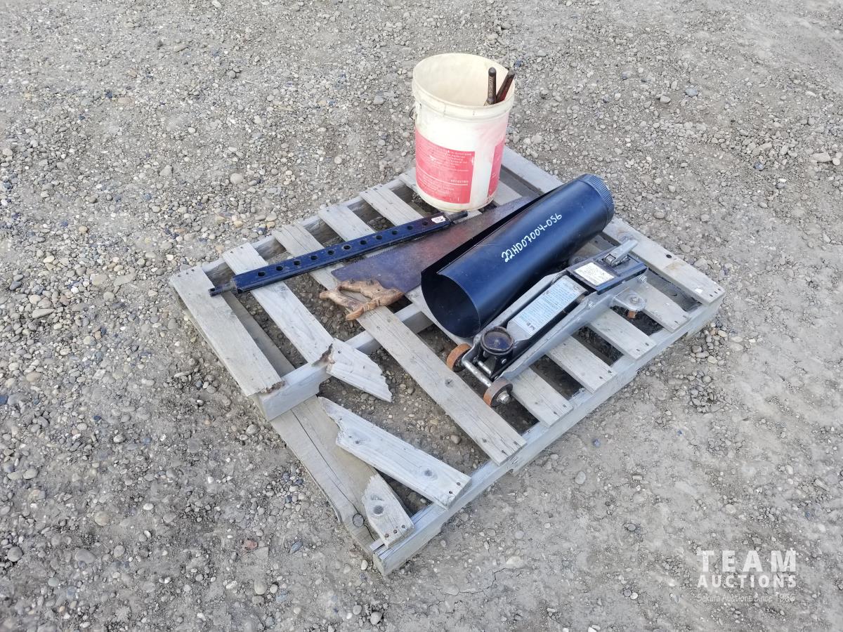 57 4000 lb Hydraulic Trolly Jack, Boomers, Saw & Chimney Pipe