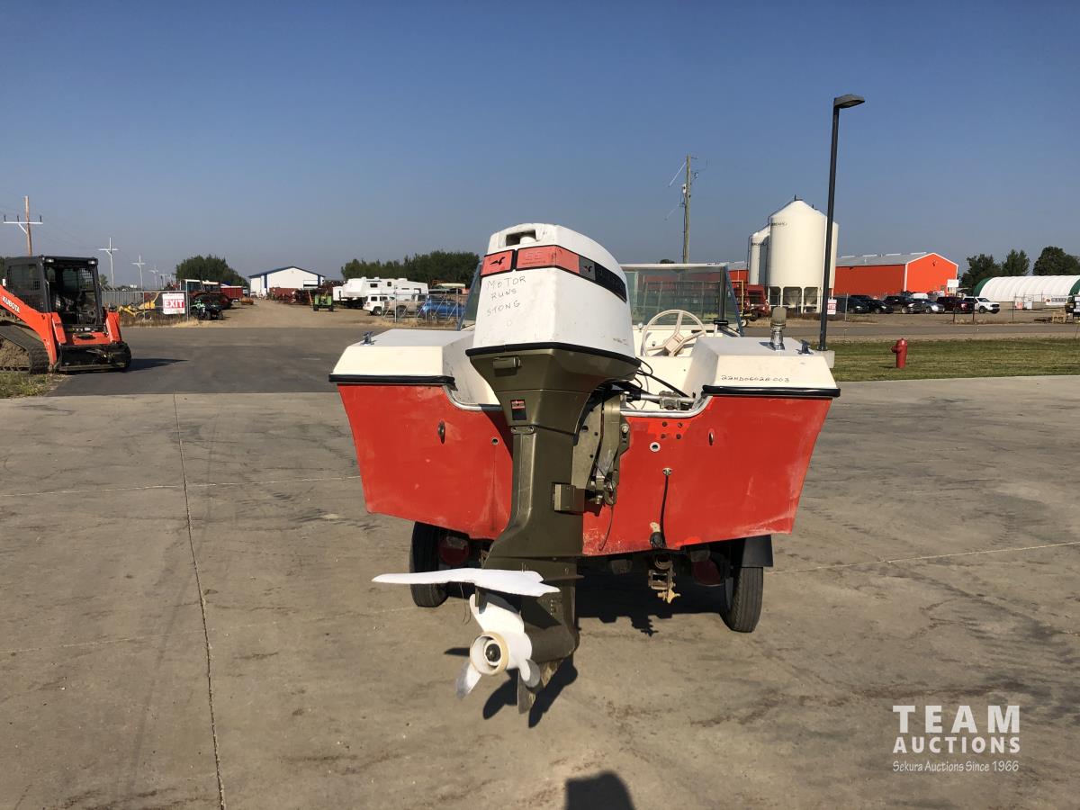 Johnson 65 HP outboard motor, 1-7/8 inch ball hitch, 5.30-12 tires