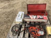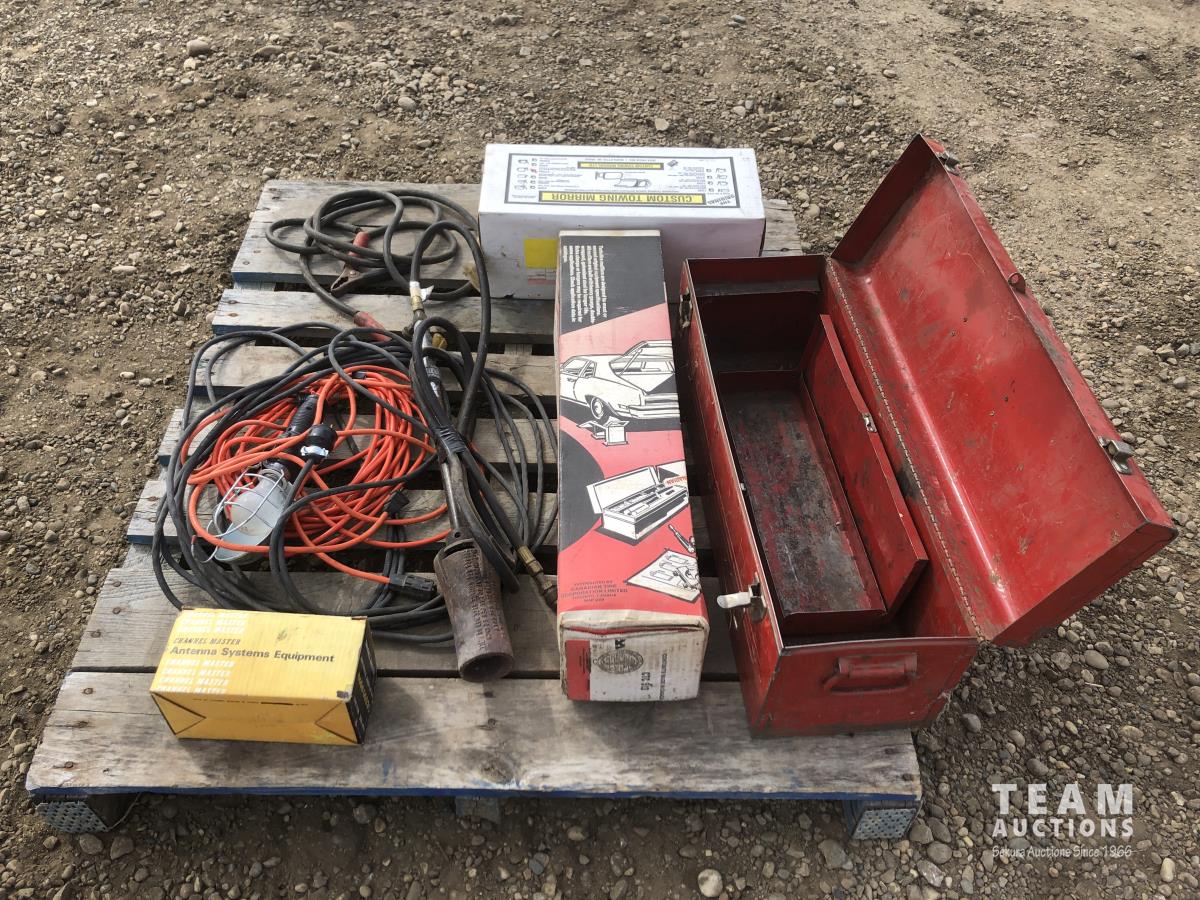 muffler, tool box, tiger torch, trouble light, booster cable, extension cord, antenna system